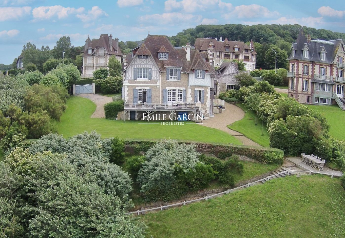 Emile Garcin vous propose en location saisonnière, une exceptionnelle propriété dans la pure tradition des belles anglo-normandes d'entre deux guerres, de 11 pièces principales d'environ 350 m². avec accès direct à la plage.