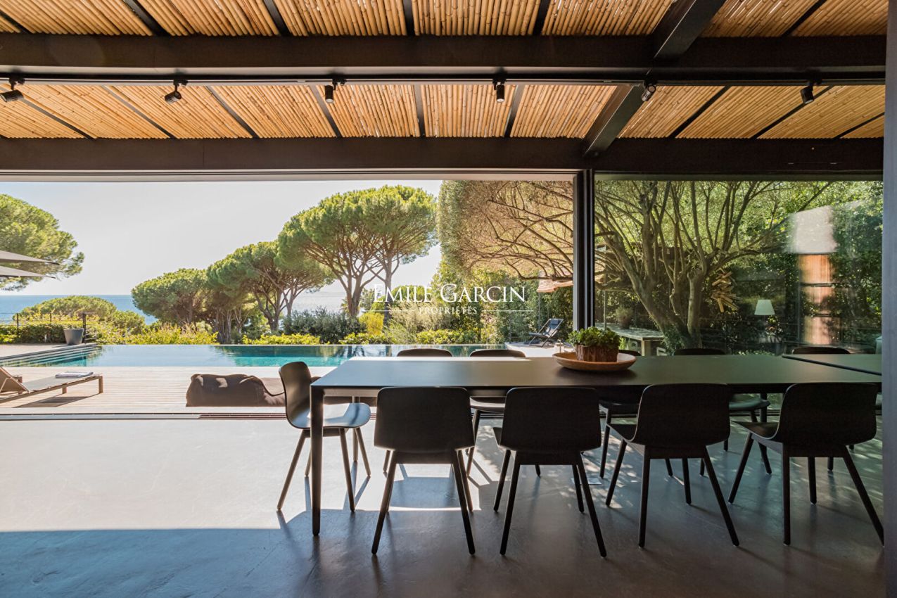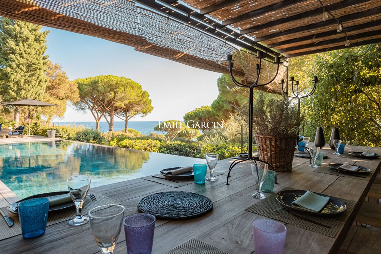 A quelques minutes en voiture de Saint-Tropez, propriété entièrement neuve avec son Beach-House sur un terrain de 4 300m2. Accès direct à la plage, vue mer. Dans un environnement calme et verdoyant. Piscine chauffée. Salle de sport. Terrain de pétanque. Mise à disposition de 2 Paddles. Bouée d'amarrage. 7 chambres, 7 salles de bains. Numero d'enregistrement : 83048 000798 Z9