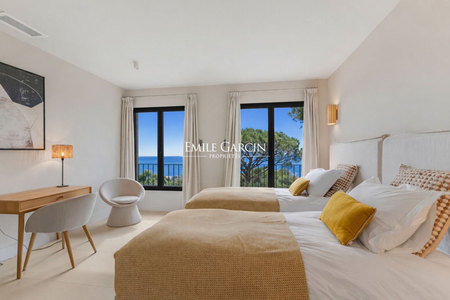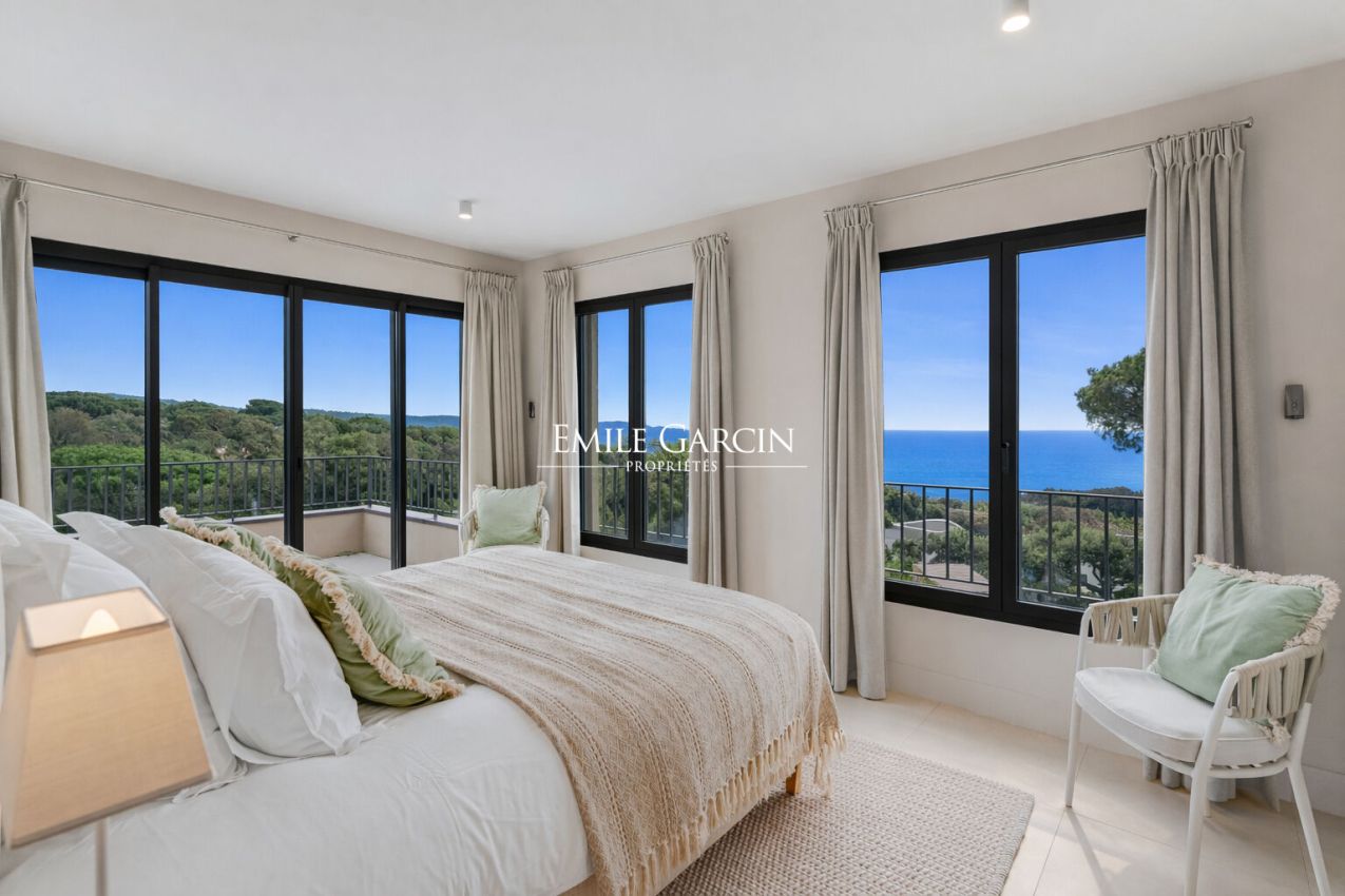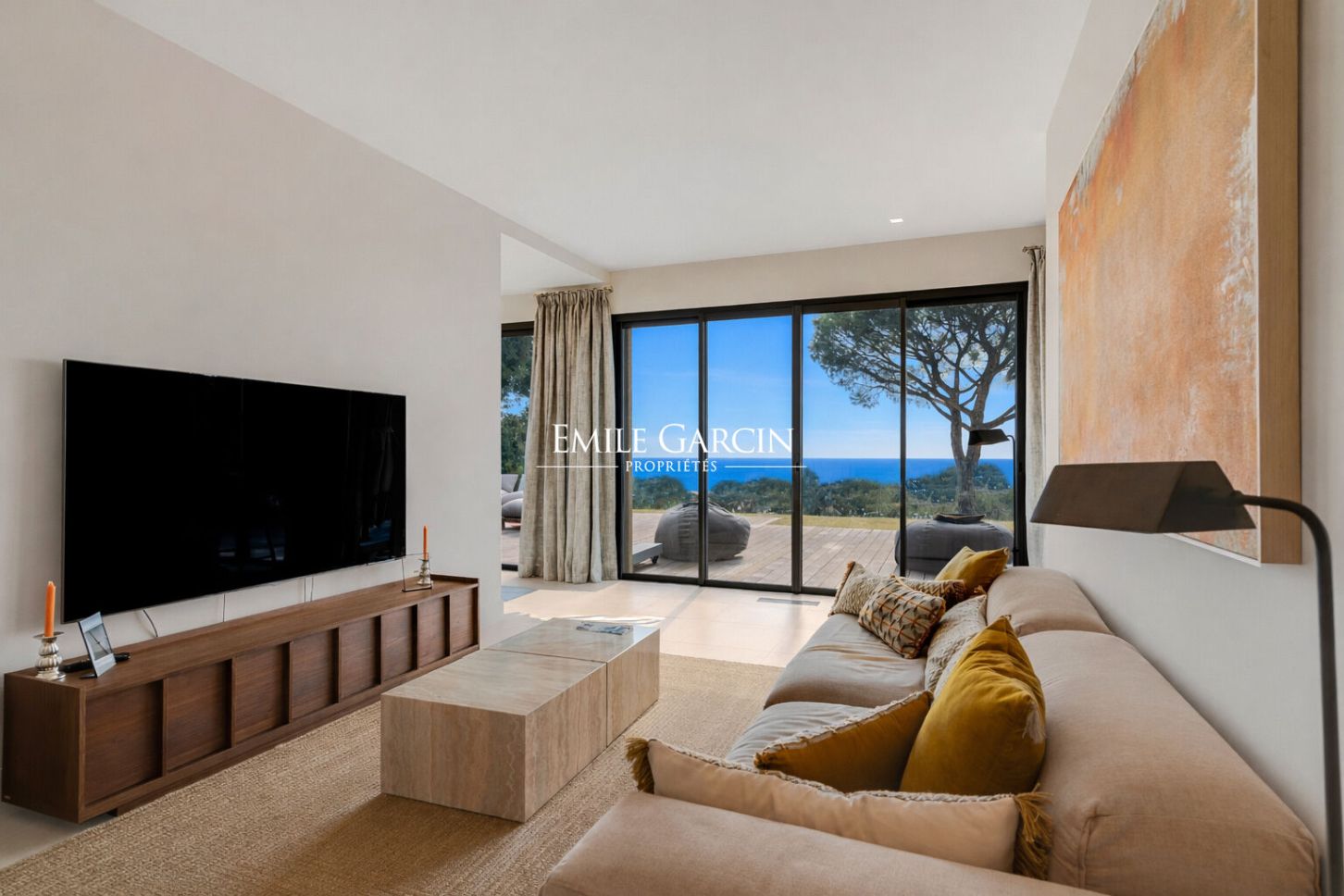 Située au sein d'un domaine privé, sur les hauteurs de Gigaro, cette villa neuve à la location bénéficie d'une vue mer panoramique exceptionnelle et d'un environnement calme et recherché. La propriété offre cinq chambres, de généreux volumes et de beaux espaces extérieurs aménagés de 150 m², incluant une cuisine d'été idéale pour les moments de convivialité. Une piscine chauffée de 11 x 5 mètres, une table de ping-pong, un garage ainsi que des places de stationnement complètent les prestations de cette villa moderne, parfaite pour des séjours en famille ou entre amis sur la Côte d'Azur.