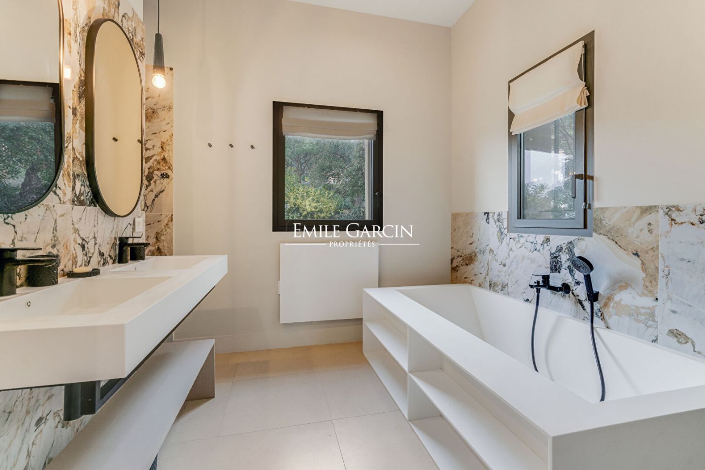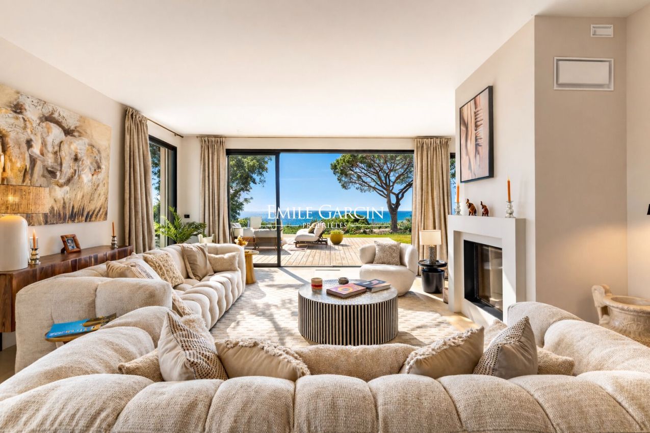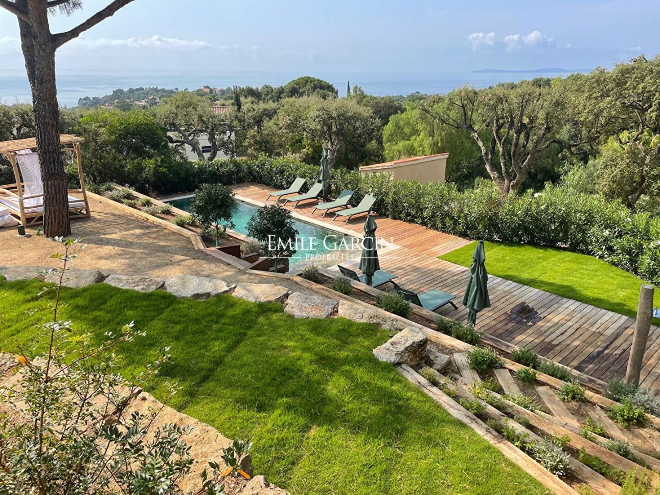 Située au sein d'un domaine privé, sur les hauteurs de Gigaro, cette villa neuve à la location bénéficie d'une vue mer panoramique exceptionnelle et d'un environnement calme et recherché. La propriété offre cinq chambres, de généreux volumes et de beaux espaces extérieurs aménagés de 150 m², incluant une cuisine d'été idéale pour les moments de convivialité. Une piscine chauffée de 11 x 5 mètres, une table de ping-pong, un garage ainsi que des places de stationnement complètent les prestations de cette villa moderne, parfaite pour des séjours en famille ou entre amis sur la Côte d'Azur.