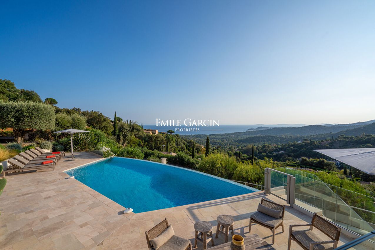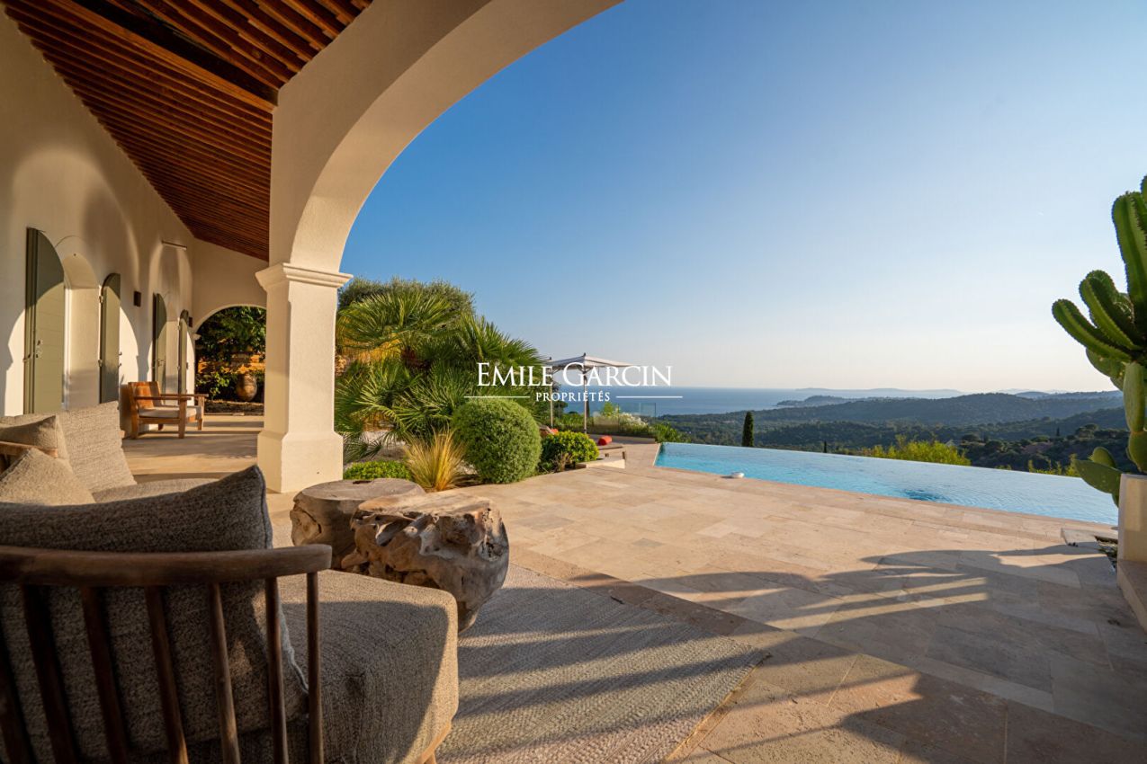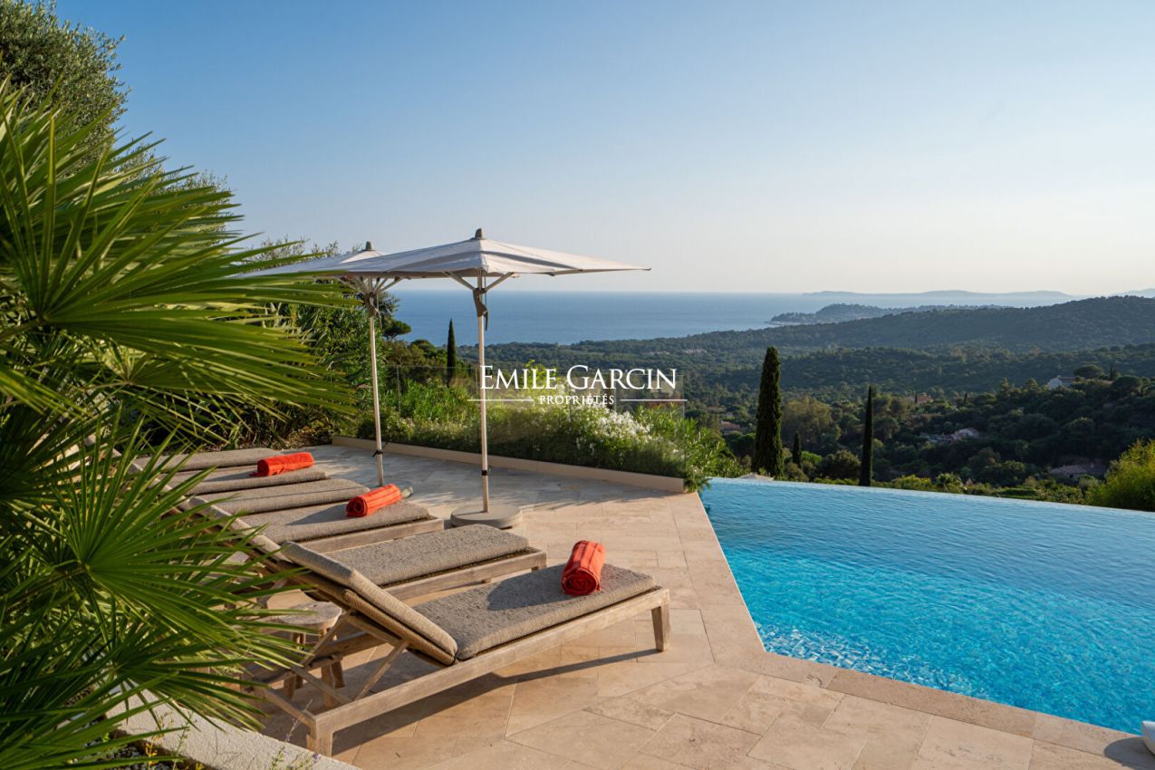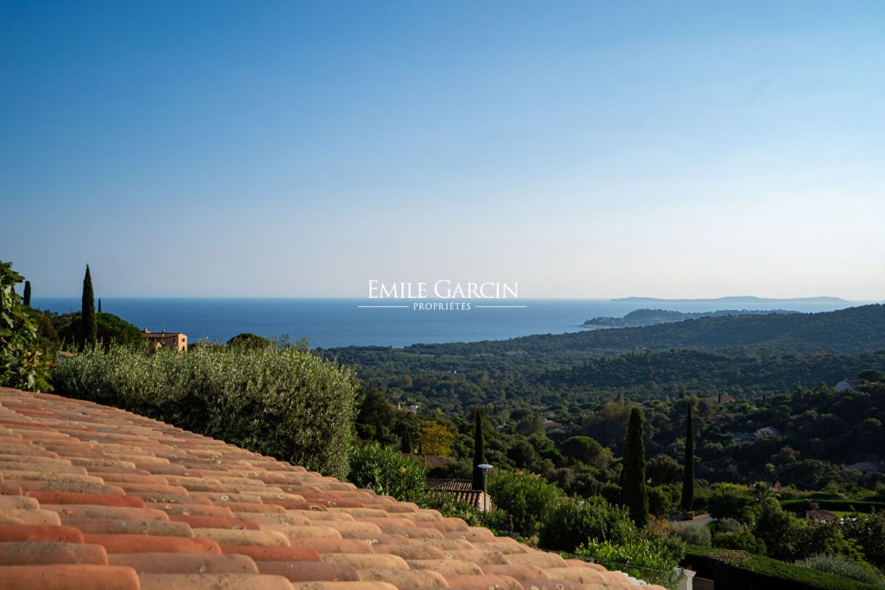Située à La Croix-Valmer, au sein d'un domaine fermé et sécurisé, cette élégante villa offrant une superbe vue mer et collines se distingue par sa décoration soignée et ses cinq chambres confortables. Elle dispose également de nombreux espaces extérieurs conviviaux, d'une piscine sécurisée et d'un terrain de pétanque, parfaits pour profiter pleinement de l'art de vivre tropézien.