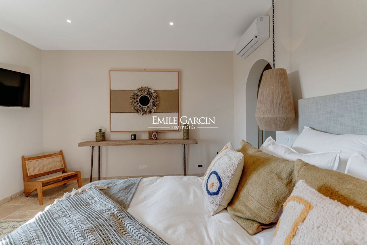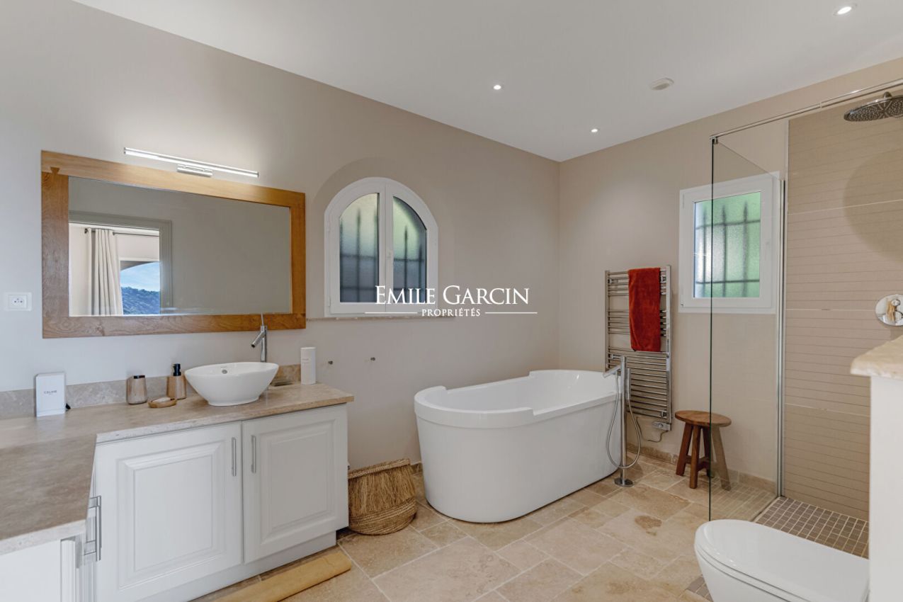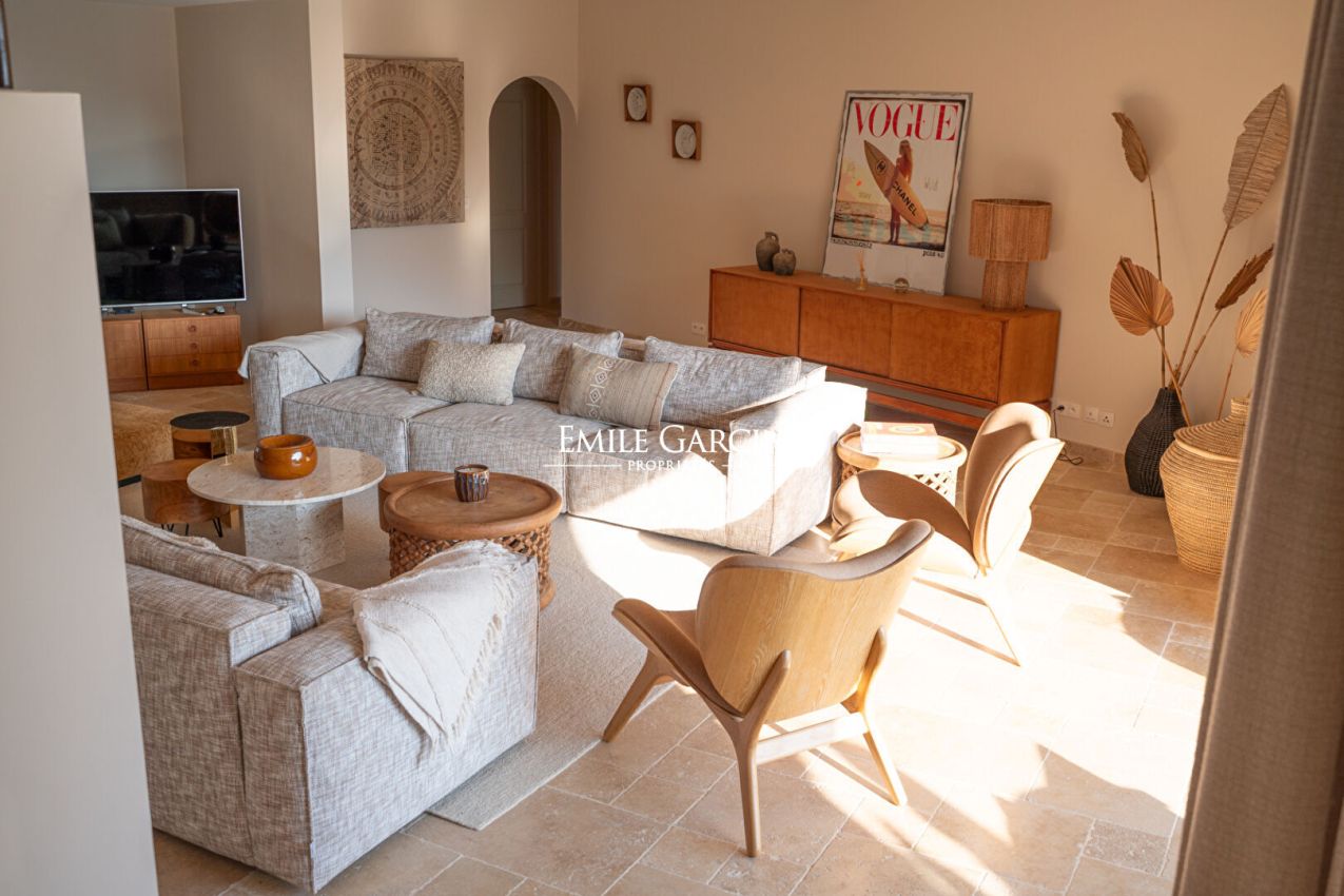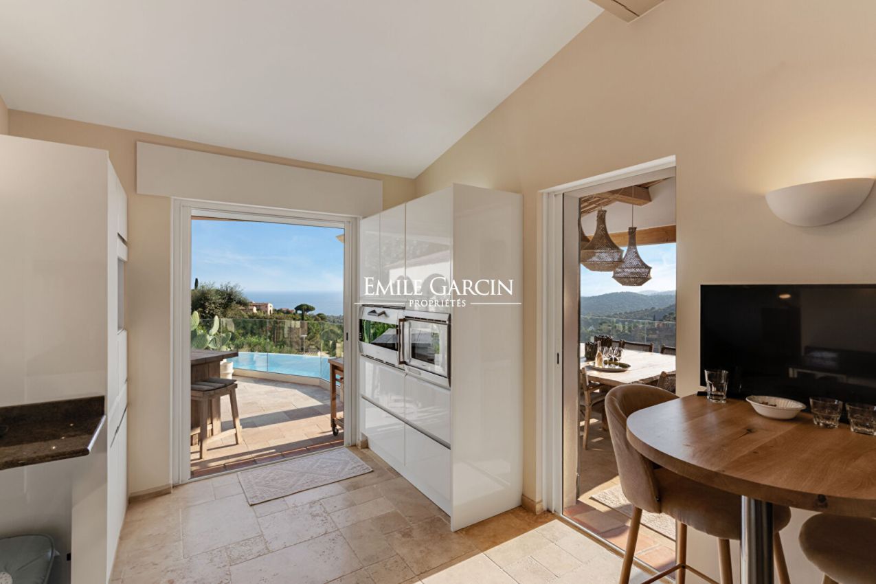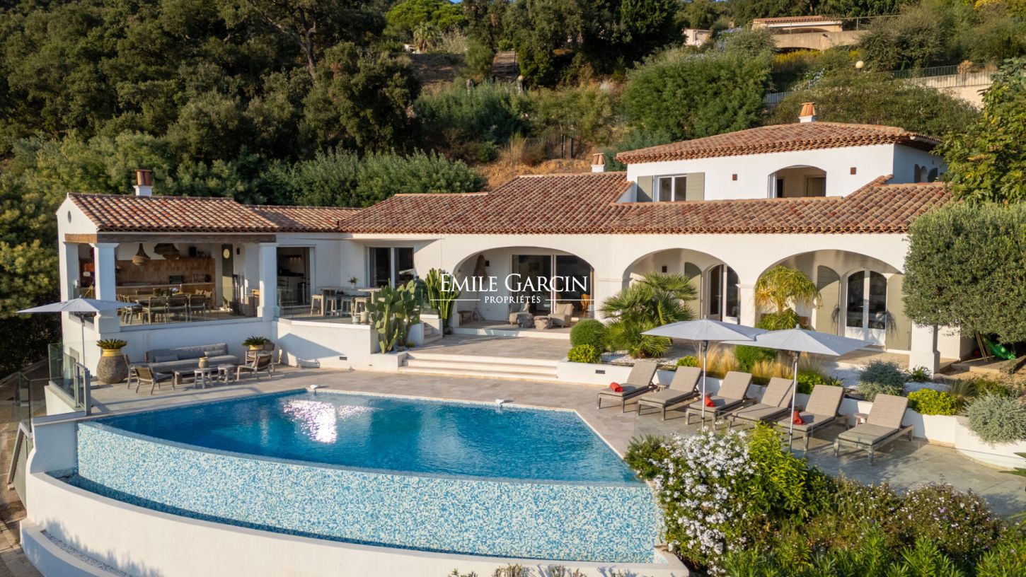 Située à La Croix-Valmer, au sein d'un domaine fermé et sécurisé, cette élégante villa offrant une superbe vue mer et collines se distingue par sa décoration soignée et ses cinq chambres confortables. Elle dispose également de nombreux espaces extérieurs conviviaux, d'une piscine sécurisée et d'un terrain de pétanque, parfaits pour profiter pleinement de l'art de vivre tropézien.