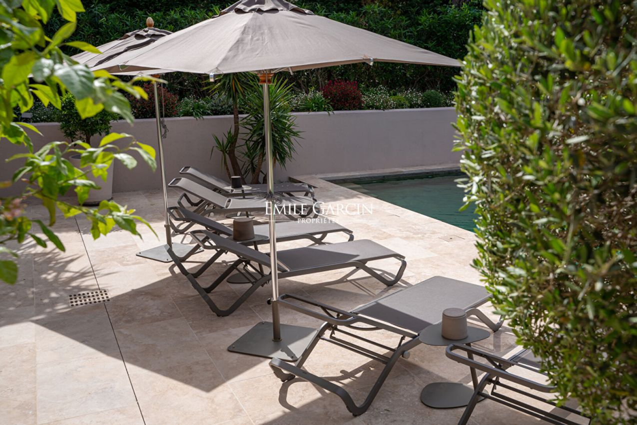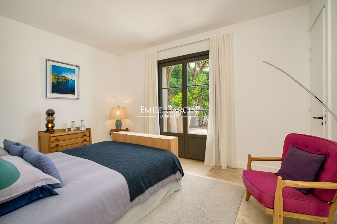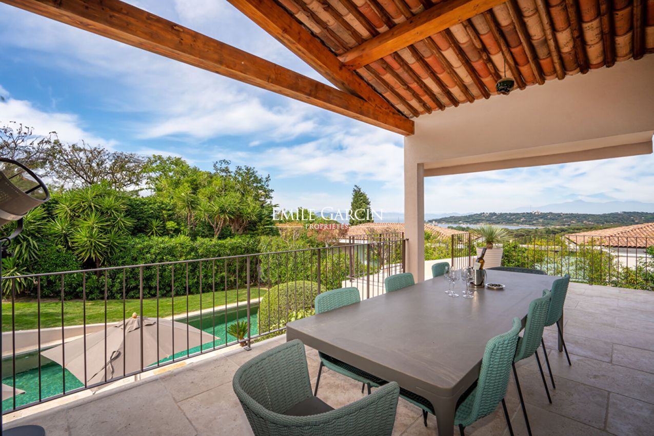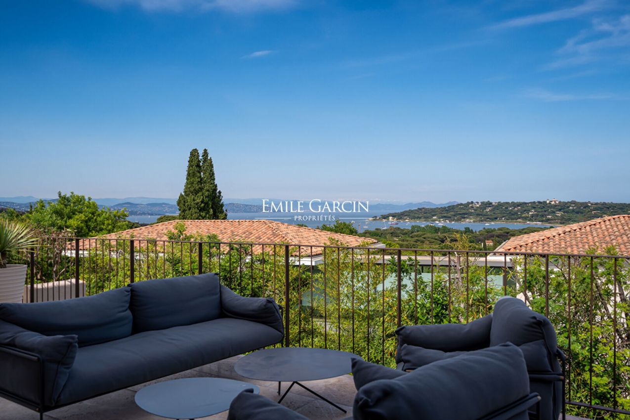 Entre le village mythique de Saint-Tropez et les plages ensoleillées de Pampelonne, cette élégante villa d'environ 220 m² se niche au coeur d'un jardin paysager de 1 200 m². Elle offre cinq chambres en suite, une piscine chauffée de 15 x 4 mètres et une vue mer sur la baie des Caroubiers.