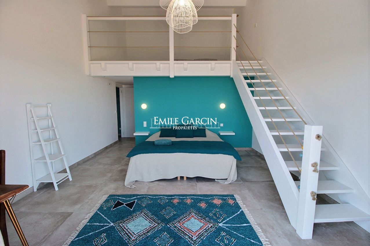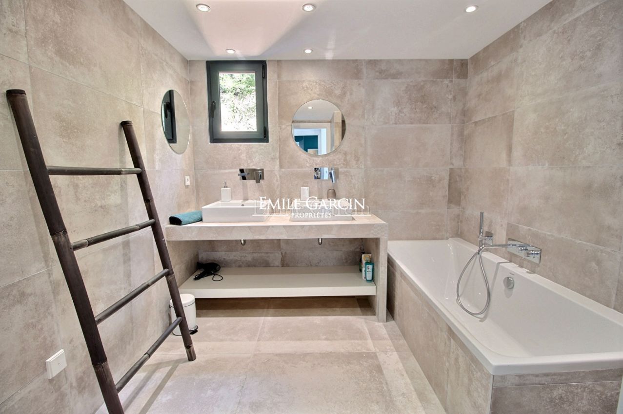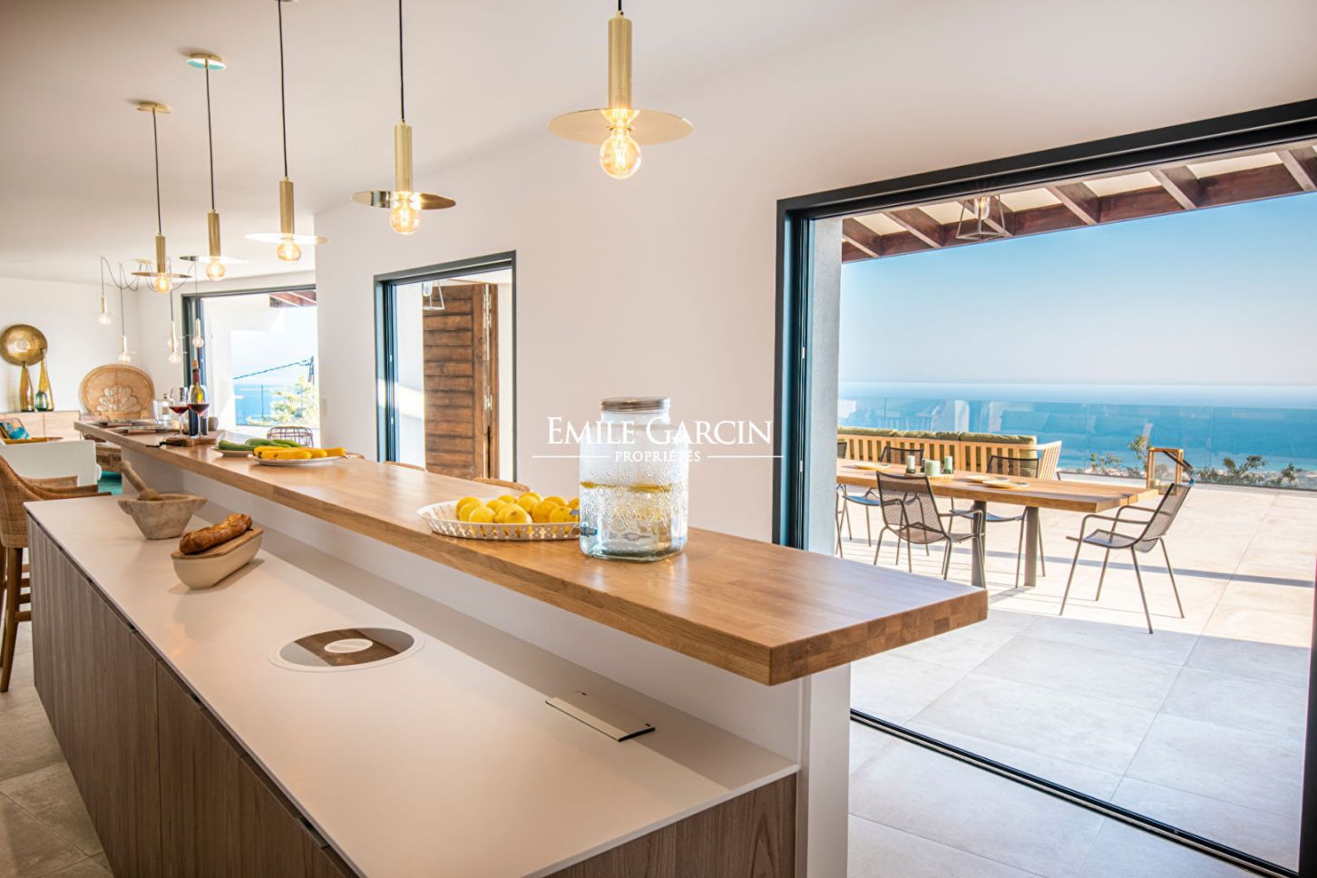 Piscine traitée au sel, à débordement 13 x 5m chauffée, et sécurisée par volet, douche extérieure. Pool house tout équipé avec une grande cuisine, salle à manger, plancha XXL. Le jardin planté d'essences locales est constitué de plusieurs restanques pour profiter de la vue mer de part et d'autre.