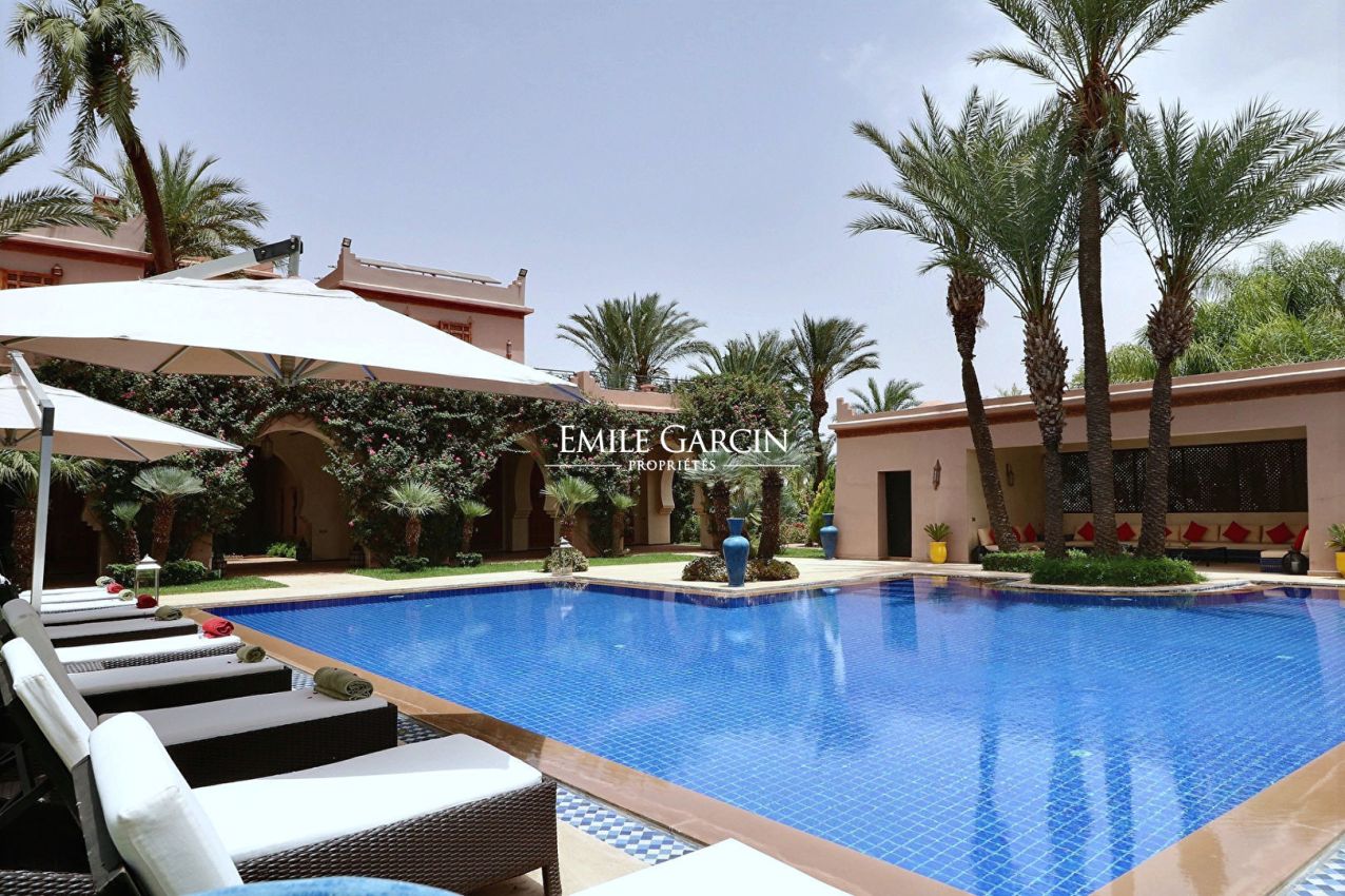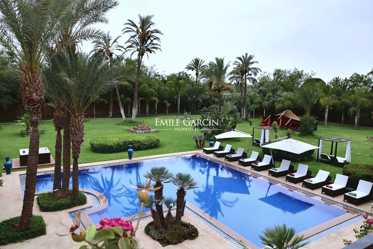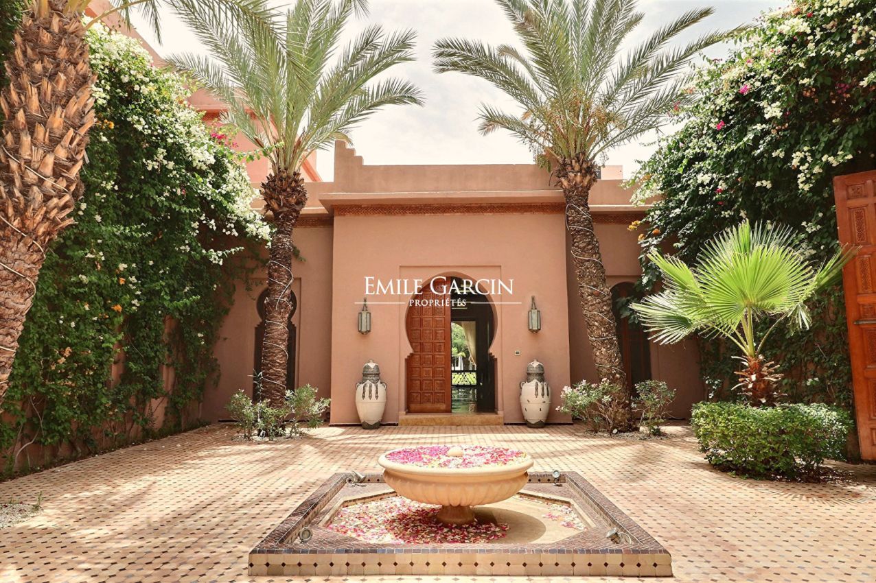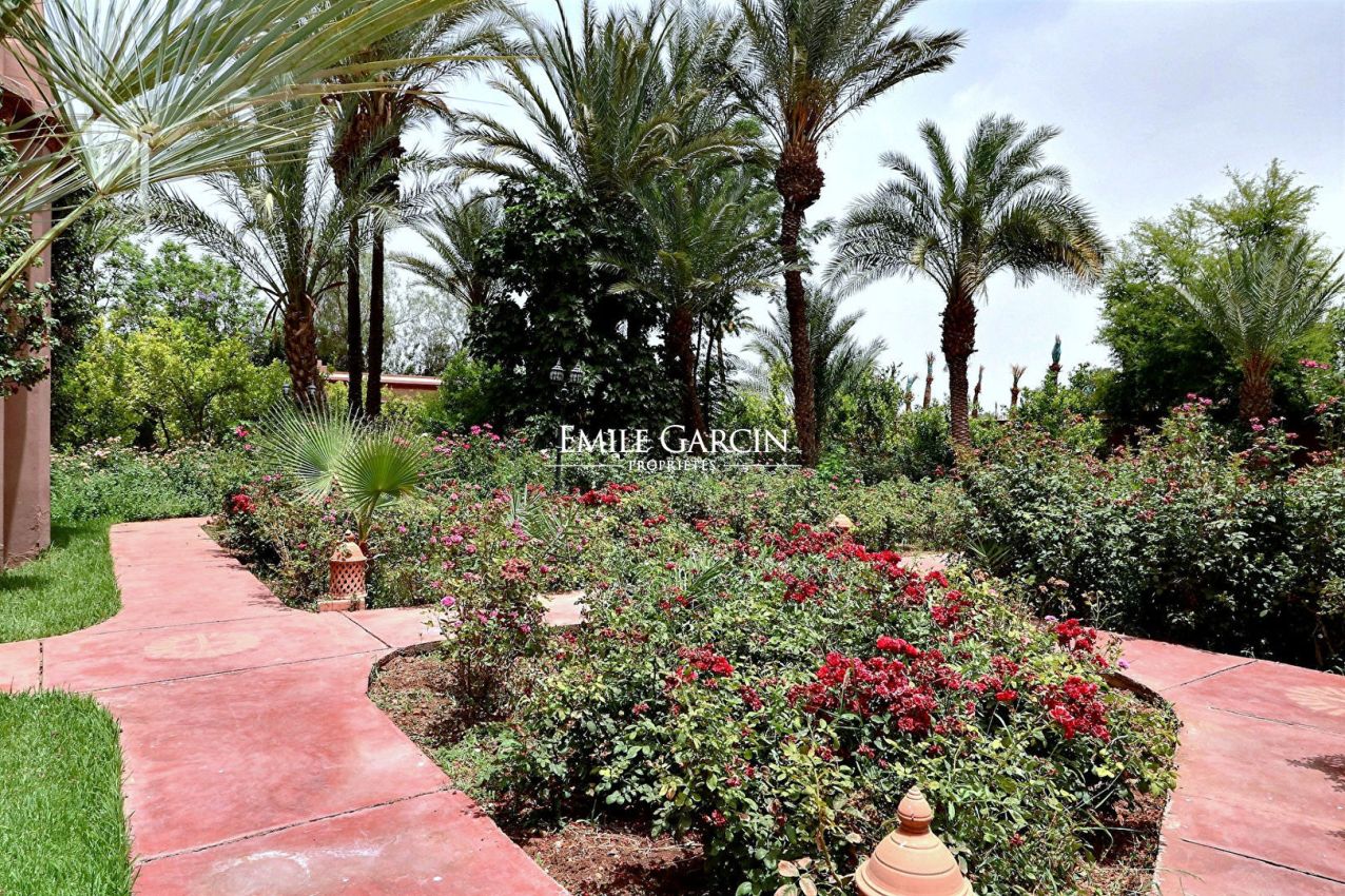 Belle propriété dans la Palmeraie de Marrakech de 1000 m² habitables, sur un parc arboré de 1,6 hectares.