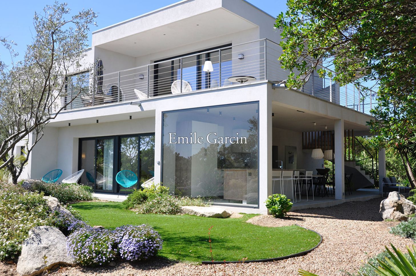 C'est une maison d'architecte, restructurée au printemps 2016, en plein espace Natura 2000, sans nuisance, dévoilant une très belle vue sur la mer à 900 m et la montagne, non loin de la plage de Pinarellu (20 minutes à pieds, 10 minutes en vélo et quelques minutes en voiture). Totalement climatisée. Piscine chauffée. 5 chambres - 5 salles de bains.