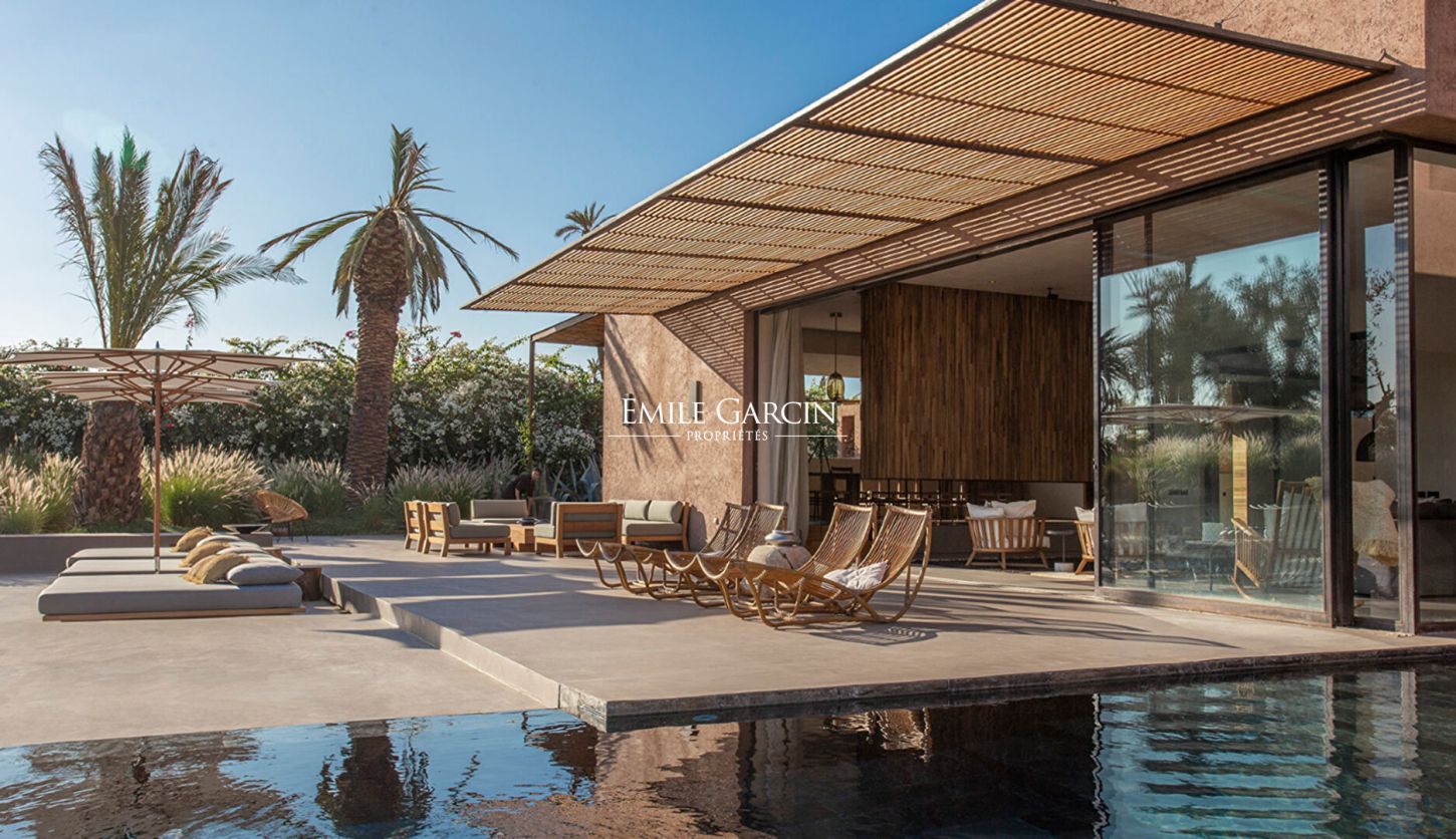 Sur un parc arboré d'un hectare, maison d'architecte de 1000m², vue sur les montagnes de l 'Atlas.