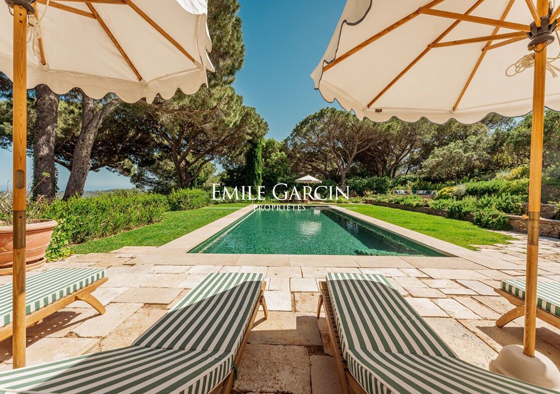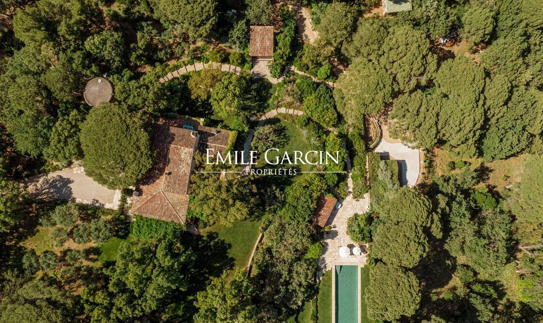 Idéalement située à proximité du village de Ramatuelle et des célèbres plages de Pampelonne, cette élégante propriété de 300 m² s'étend sur un vaste terrain paysager de 3 hectares.