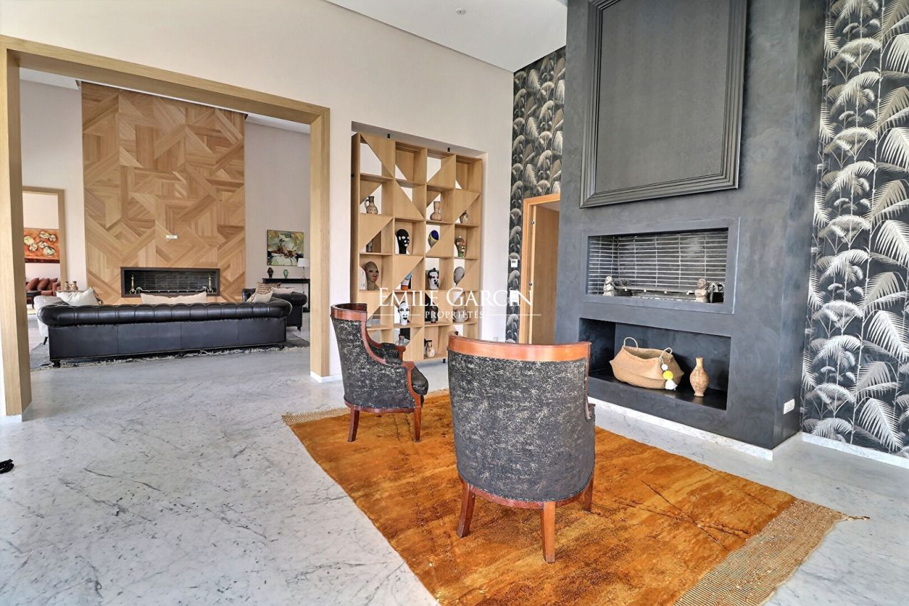 2 salons extérieurs dont 1 avec cheminée. Piscine chauffée, hammam, salle de gym. Dépendance gardien.