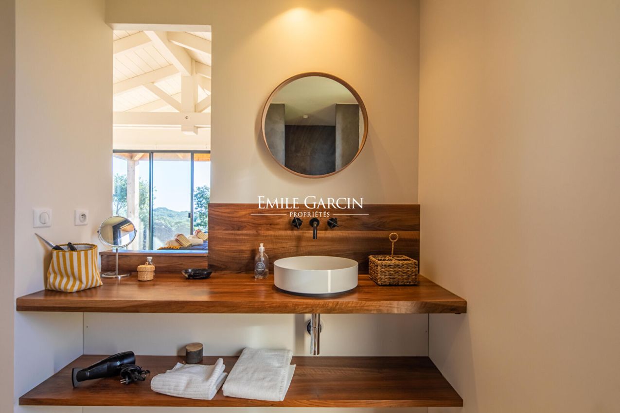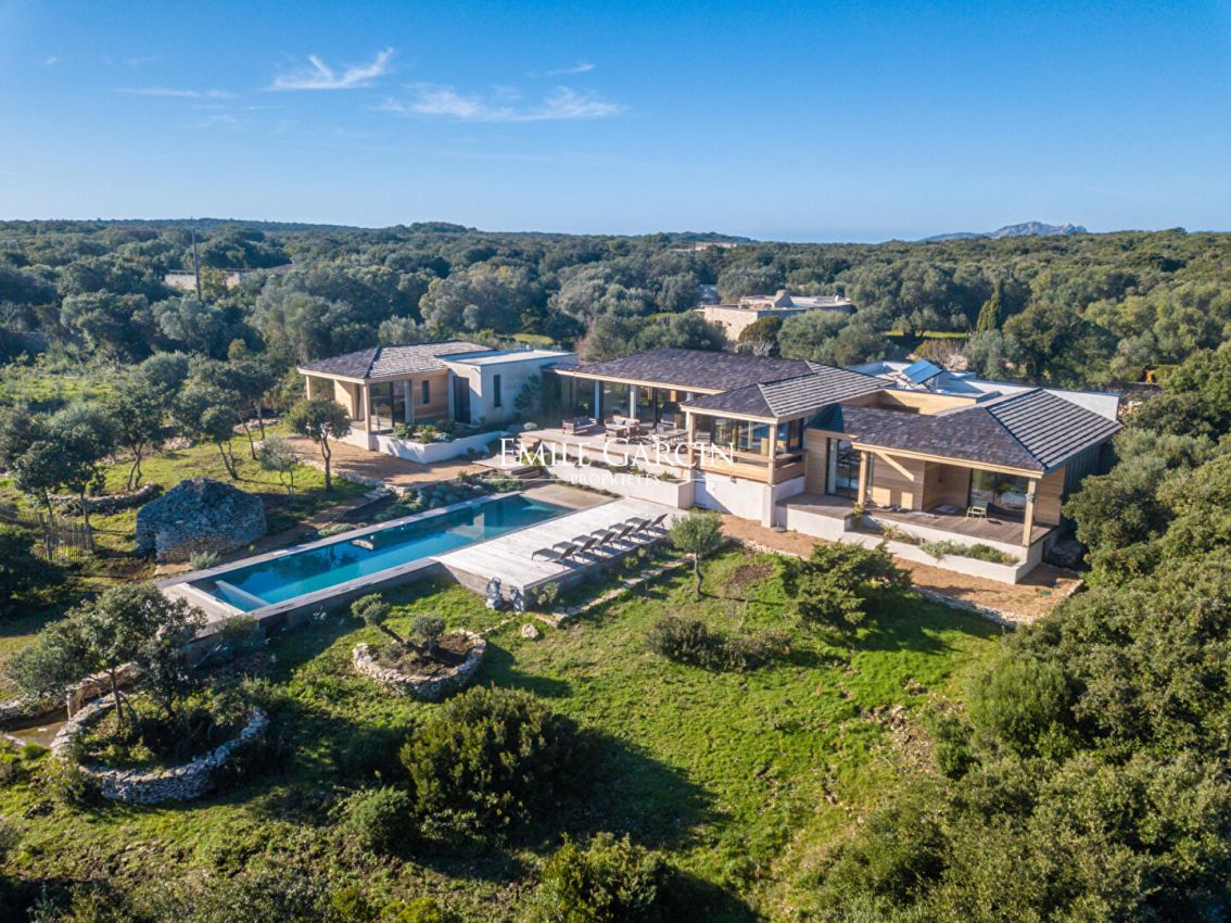Très jolie propriété de 4 chambres et 4 salles de bains, située à seulement 15 minutes de la célèbre cité Bonifacienne et de ses plages environnantes. Somptueuse vue de fond sur la mer et les Iles Lavezzi. Entièrement climatisée.