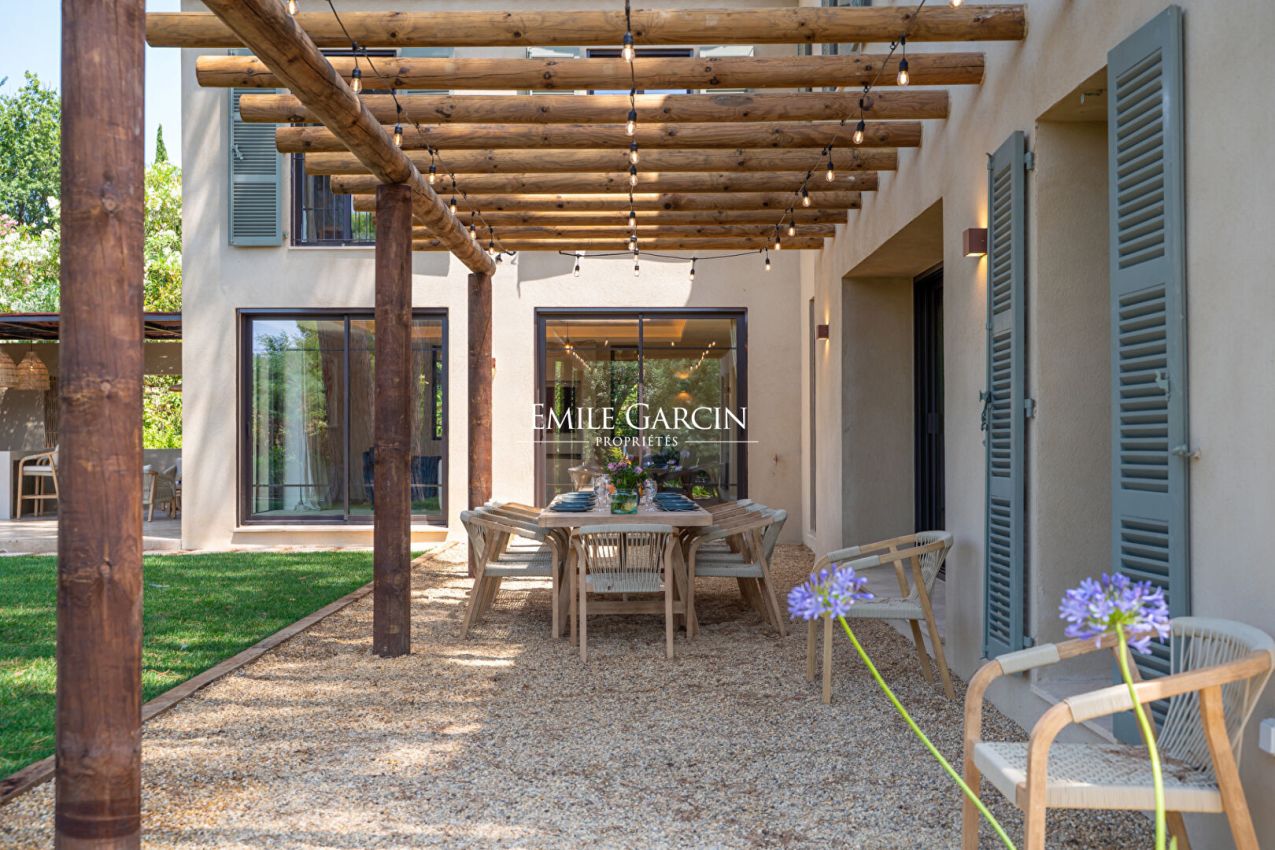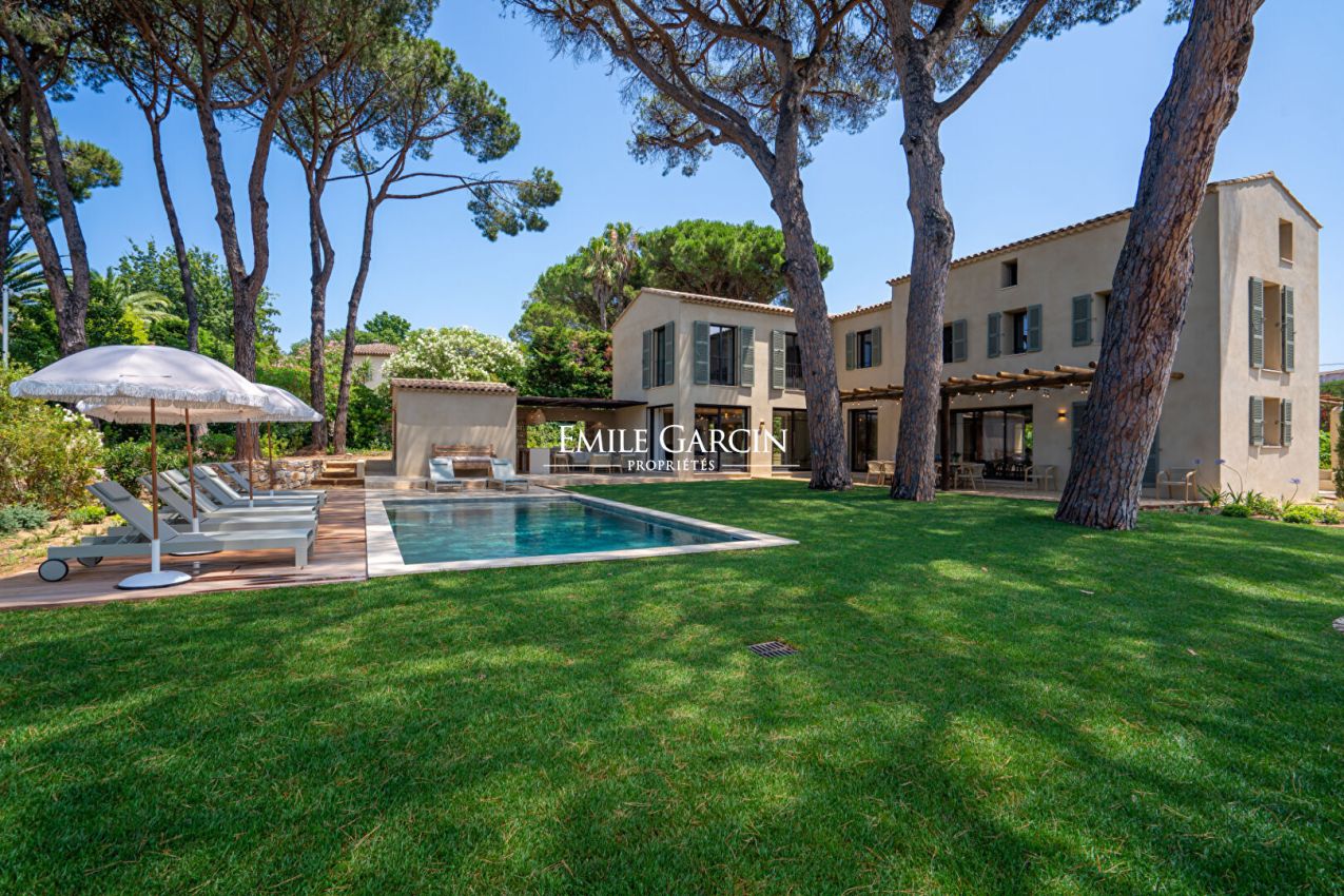 Idéalement située à seulement 1,4 km du coeur de Saint-Tropez, cette belle propriété de 190 m² est implantée sur un terrain paysager de 1 357 m², dans un environnement calme et verdoyant, entouré de vignes.
