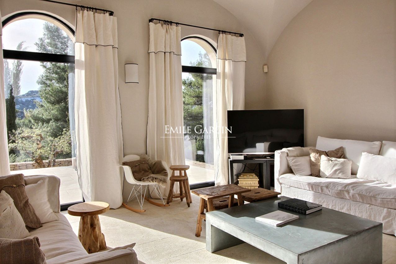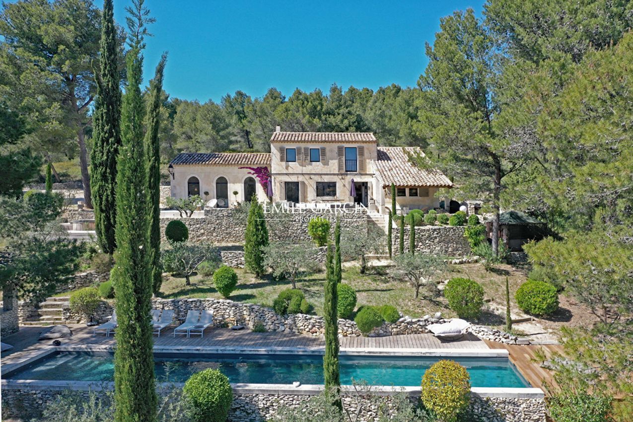 Aux Baux de Provence, petit paradis caché dans les Alpilles avec une très belle vue, un joli mas avec ses jardins en escalier rappelant la Toscane, ses terrasses ensoleillées et celles ombragées par la vigne et les pins. Le cadre est idéal pour une évasion dans les Alpilles entre amis ou en famille. 7 chambres climatisées. 6 salles de bains. Piscine chauffée. CAPACITE MAXIMALE : 12 personnes