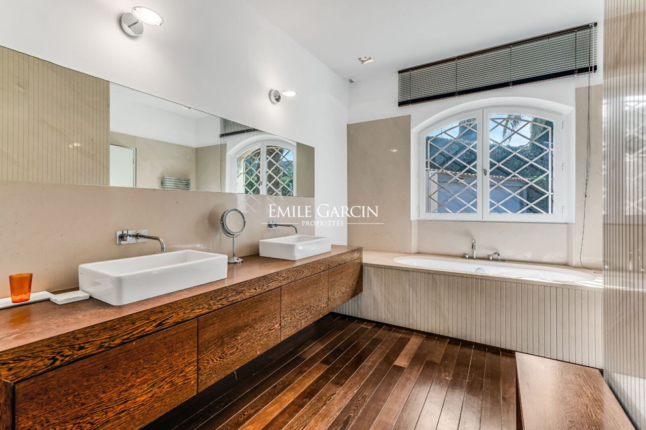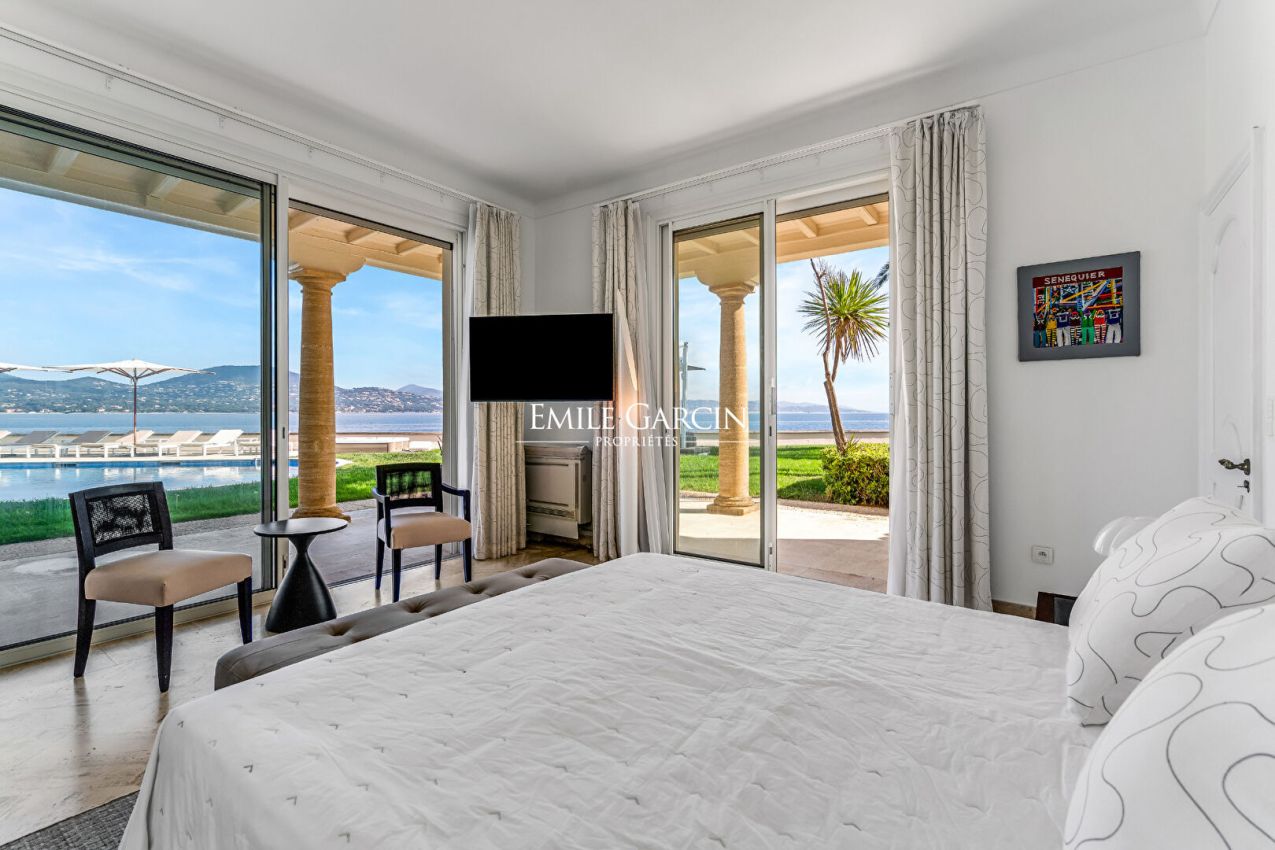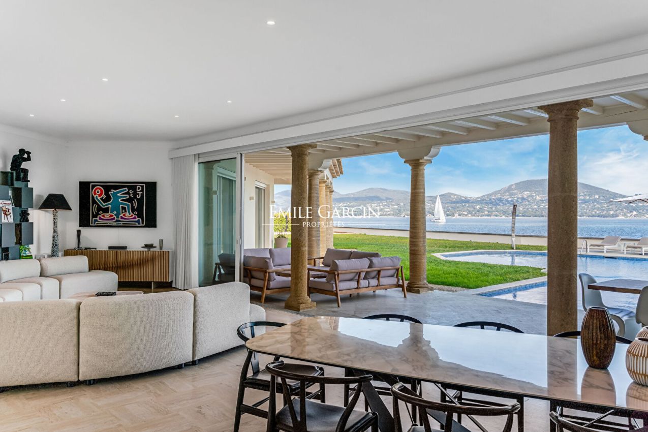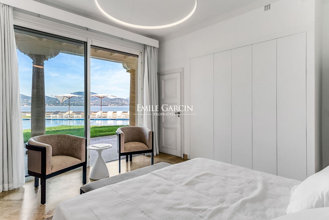 Situation rare pour cette propriété pieds dans l'eau d'environ 400 m², d'inspiration florentine, offrant un cadre unique face à la mer et des prestations de grand standing.