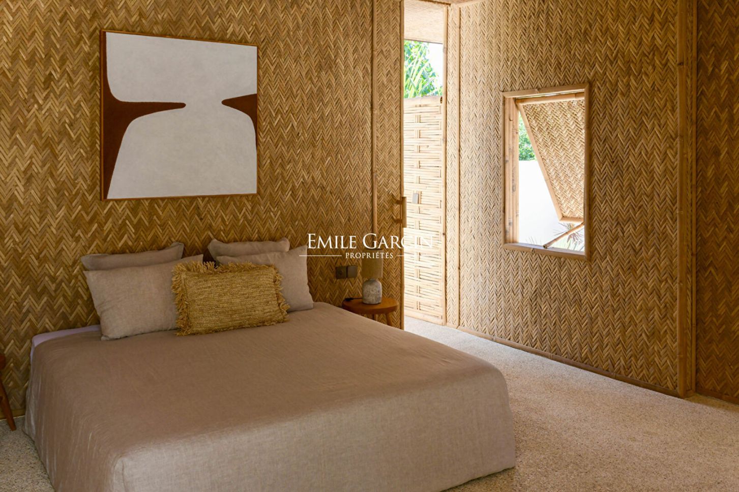 Construite de manière durable avec du bambou tissé et utilisant un système de récupération des eaux de pluie, cette maison incarne parfaitement l'art de vivre insulaire.