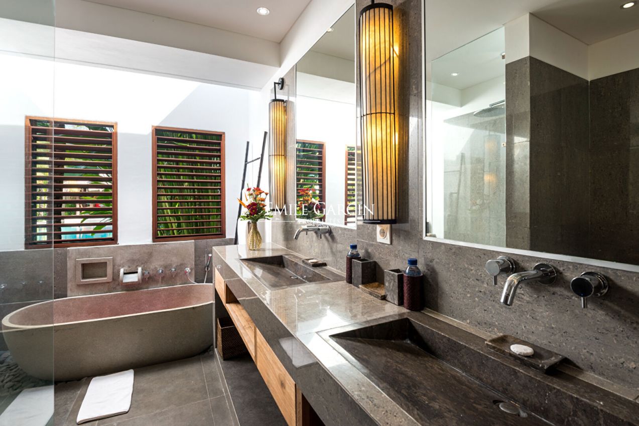Nichée au coeur d'une propriété verdoyante, cette villa offre un havre tropical tranquille. A l'intérieur, vous trouverez une décoration raffinée et un personnel attentif toujours prêt à vous aider. L'ambiance sereine, avec son jardin accueillant et la lumière naturelle, crée le cadre idéal pour un séjour relaxant à Bali.