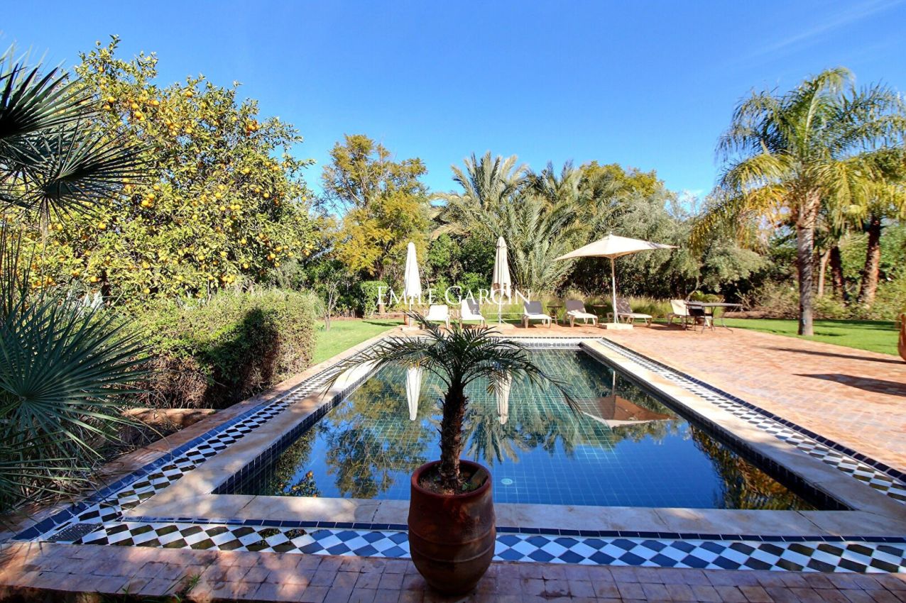 A 20 minutes du centre-ville de Marrakech, sur un golf, jolie maison de 500 m² édifiée sur un parc verdoyant de 2280 m².