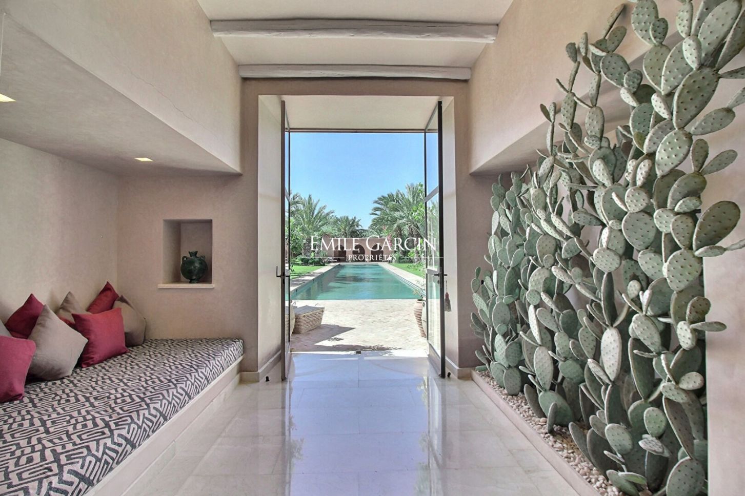 Située à seulement 10 km du centre-ville, sur un parc d'un hectare, magnifiquement arboré, avec vue sur les montagnes de l'Atlas, propriété de plain pied d'environ 1000 m².