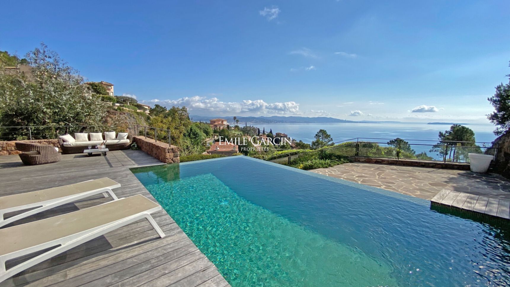 Cette villa offre une vue panoramique sur la baie de Cannes et les îles de Lérins, avec une décoration élégante et un équipement complet pour un confort optimal. Sa piscine à débordement, dotée d'un jacuzzi, vous invite à vous détendre tout en flottant au-dessus des eaux turquoise de la Méditerranée.