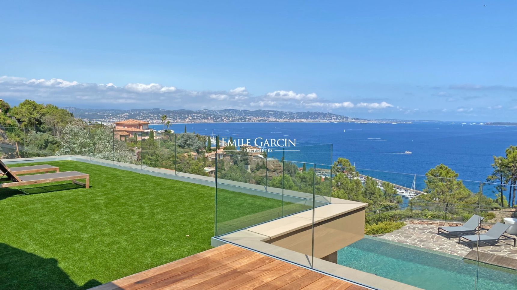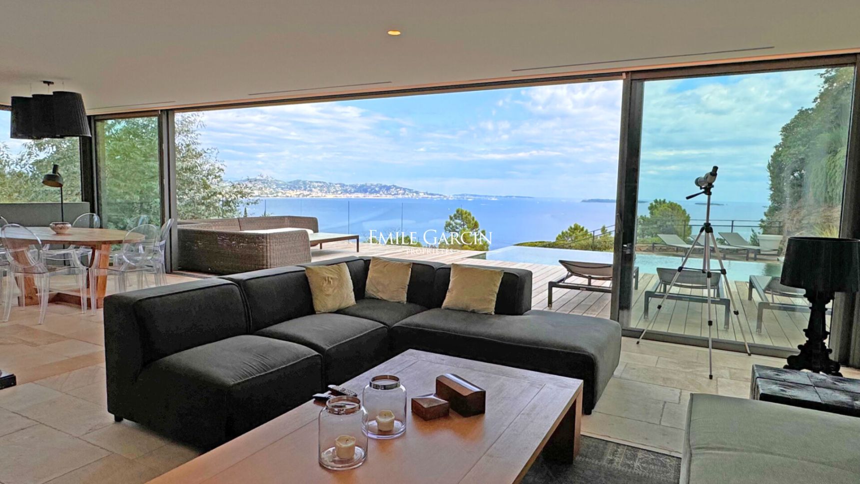 Avec 160 m² de terrasses soigneusement intégrées dans le paysage de l'Esterel, vous trouverez de nombreux espaces pour profiter du soleil ou dînez en plein air. L'espace de vie lumineux, comprenant un salon, une salle à manger et une cuisine américaine, s'harmonise parfaitement avec l'extérieur pour créer une atmosphère conviviale et accueillante.