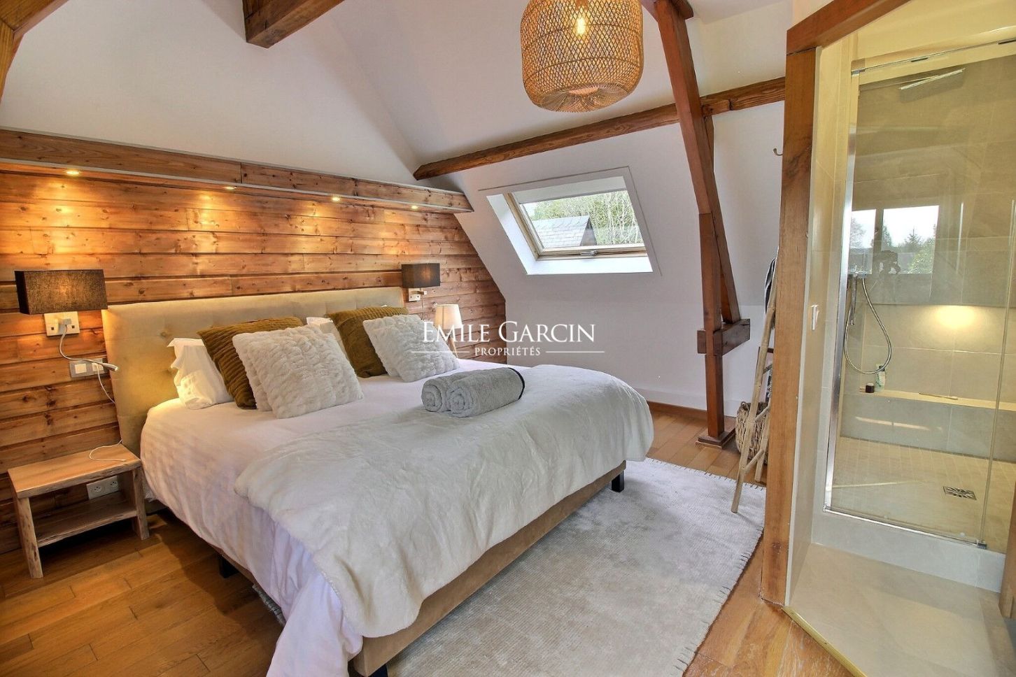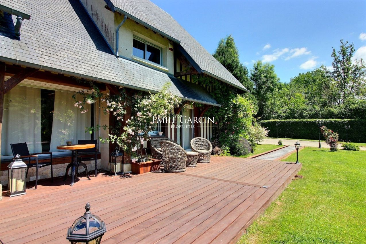 En Normandie, aux portes de Deauville. Emile Garcin vous propose à la location saisonnière cette belle maison de style normand d'environ 210 m² composée d'un séjour avec cheminée, d'une cuisine toute équipée, d'une salle de douches, d'une salle à manger et d'une véranda. Au 1er étage, trois chambres avec deux salles de douches/bains. Dans la dépendance, au rez-de-chaussée une kitchenette ainsi qu'une chambre double. Au 1er étage, espace ouvert avec 2 lits doubles et une salle de douches.