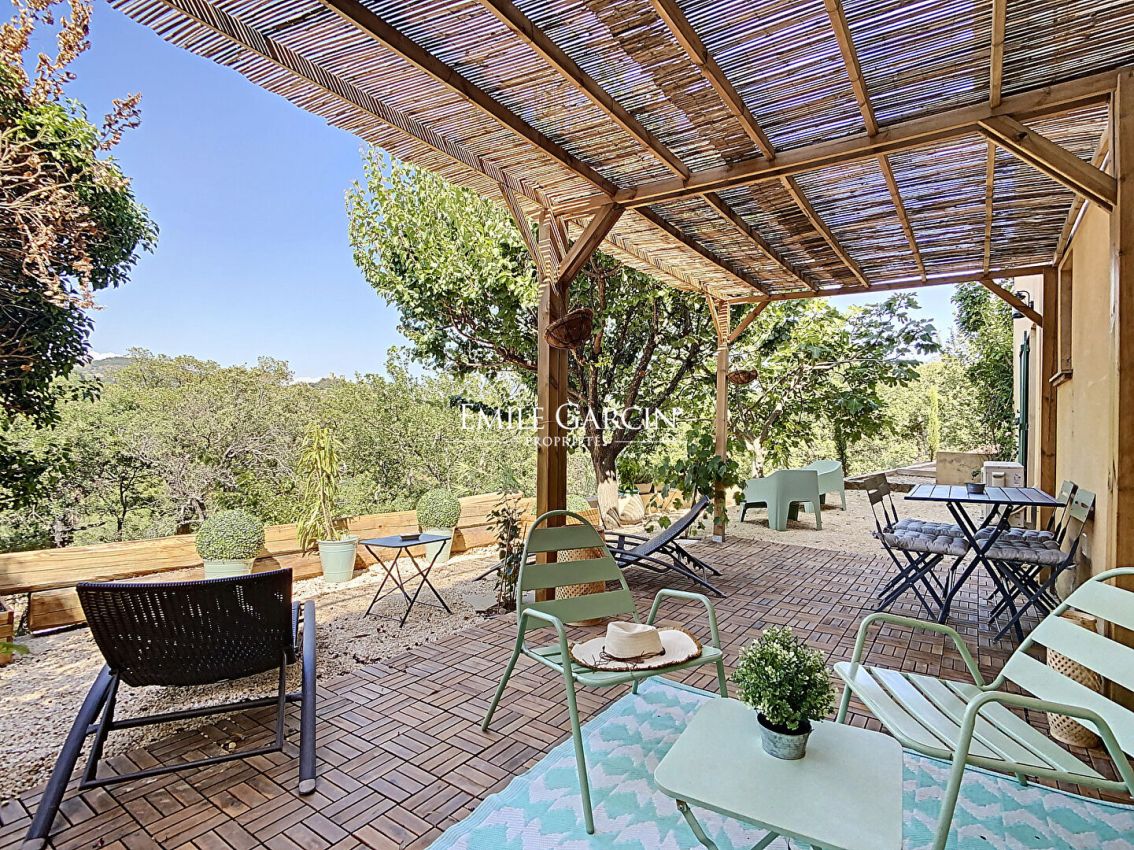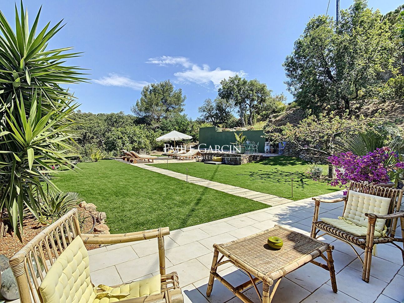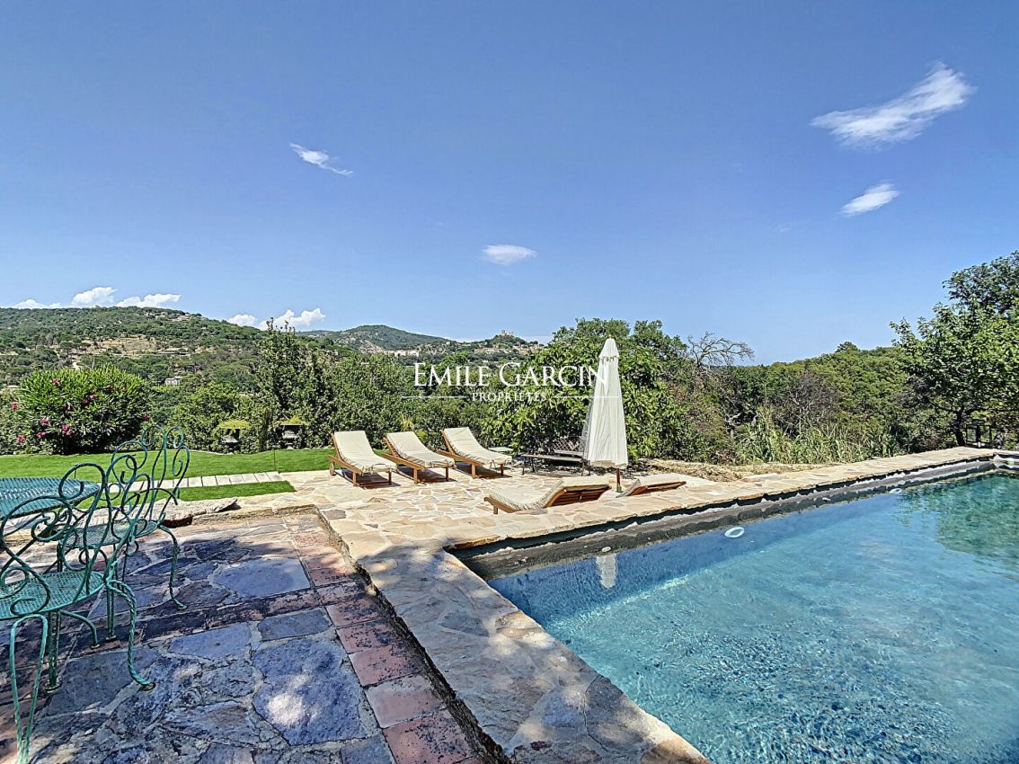 Située au calme absolu avec vue sur les collines et le château de Grimaud, propriété de 200 m2, proposant une décoration soignée. Piscine chauffée et sécurisée.