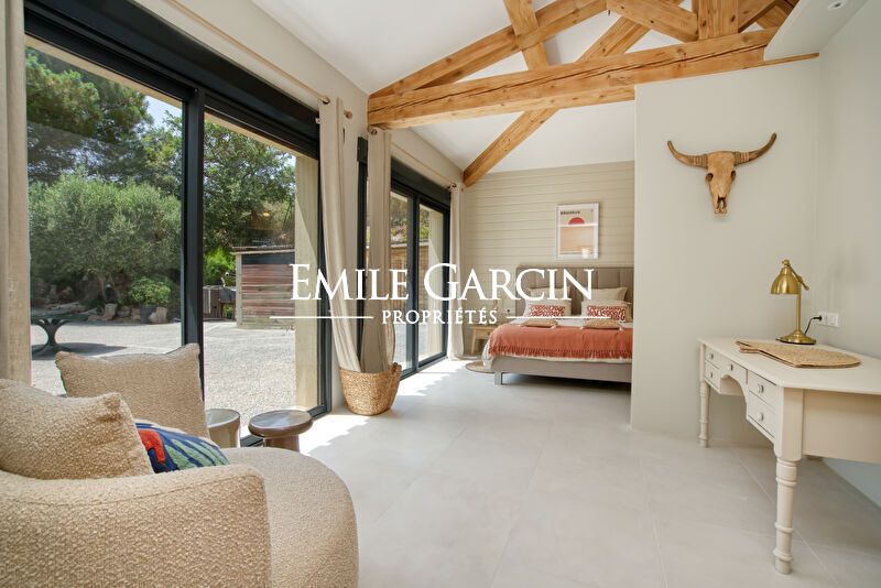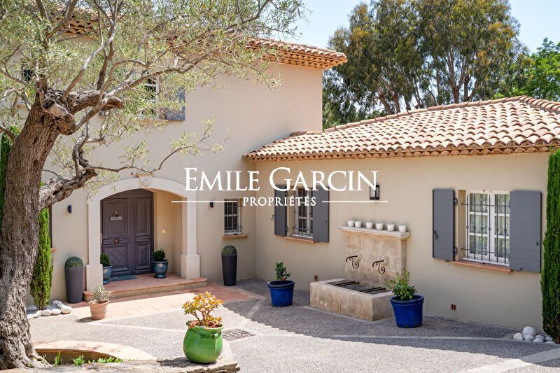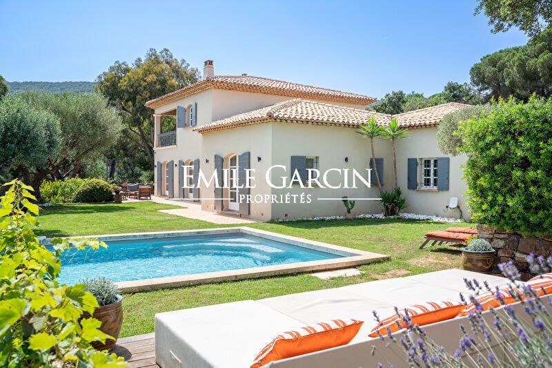 Idéalement située au pied du pittoresque village de Ramatuelle, cette propriété de 350 m² offre un cadre paisible et authentique, au coeur de la nature provençale. Baignée de lumière, elle dispose de 5 chambres et 4 salles de bains, offrant confort et intimité pour des séjours en famille ou entre amis. Son jardin soigneusement aménagé accueille une piscine de 10x5 m, sécurisée par alarme, idéale pour se rafraîchir en toute sérénité sous le soleil méditerranéen. Un terrain de pétanque et des espaces extérieurs ombragés complètent ce bien. Numéro d'enregistrement : 83101000741BQ