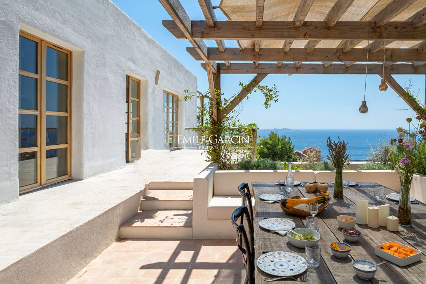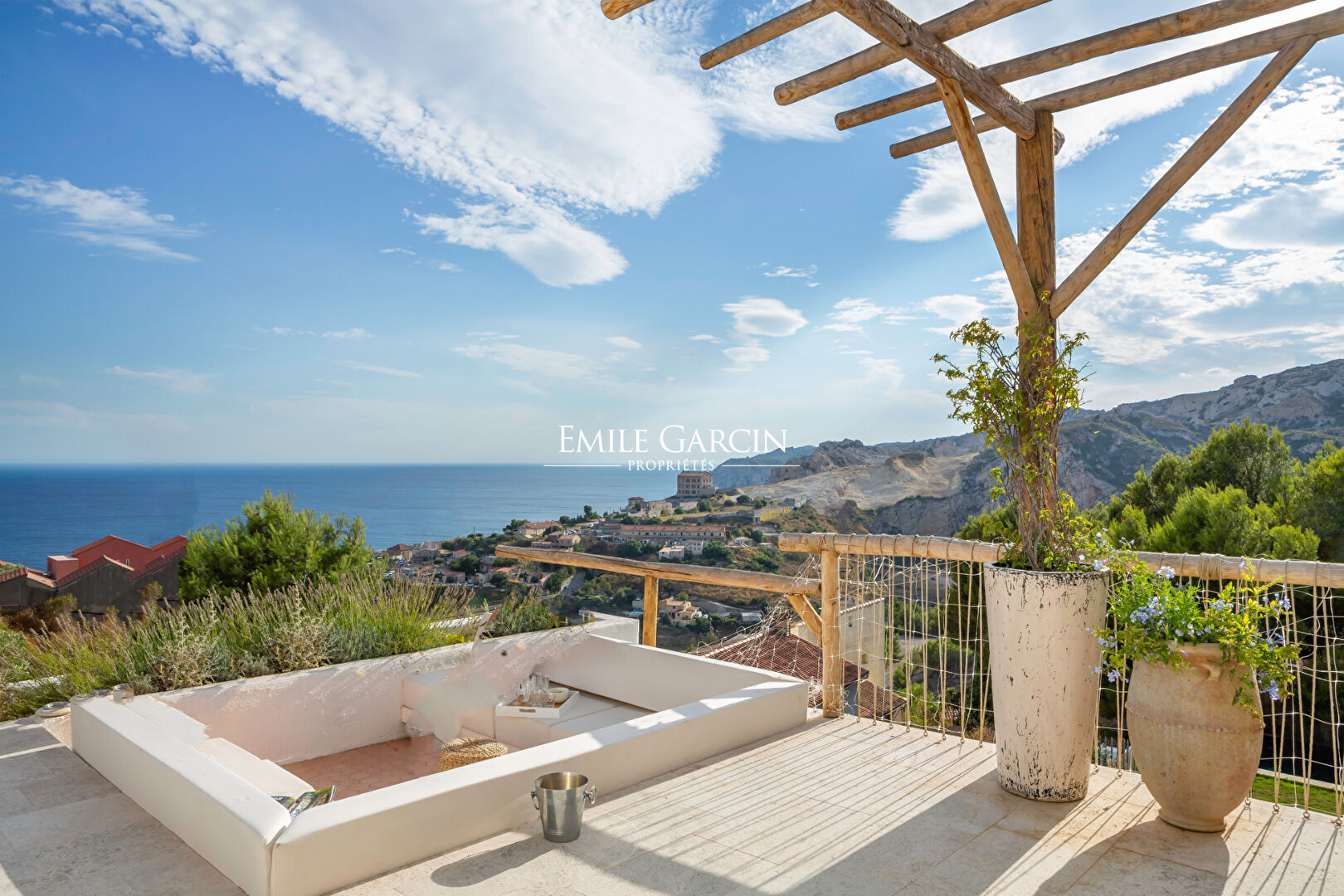 Cette villa d'architecture méditerranéenne construite en restanques, est accrochée à flanc de colline sur les hauteurs du village de l'Estaque cher à Cézanne. Sur un terrain bordé de pins, au calme absolu, elle jouit d'une magnifique vue mer panoramique sur la ville de Marseille, sa rade et les Îles du Frioul. 6 Chambres climatisées, 4 Salles de bains , capacité 12 personnes maximum (idéalement 8 adultes et 4 enfants/adolescents). Piscine à débordement de 4 x 12 m. Salle de sport, hammam, bateau à disposition en supplément.
