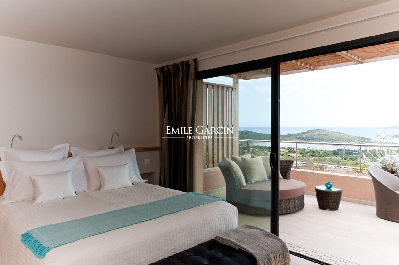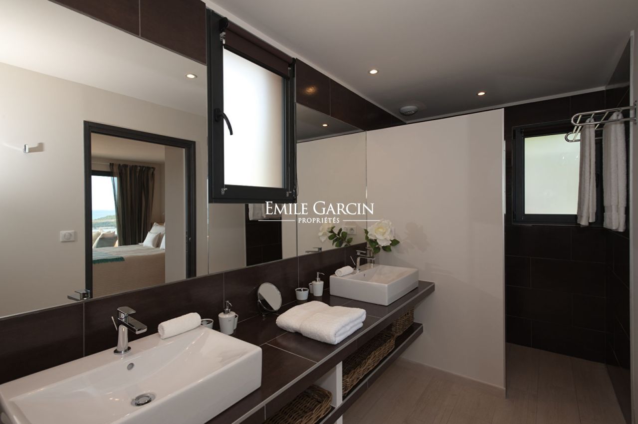 Villa moderne de 5 chambres et 5 salles de bains, située sur une grande propriété séparée en 2 villas, sur les hauteurs de la Baie de St-Cyprien à quelques minutes du fameux Restaurant Le Cabanon Bleu. Superbe vue mer panoramique. Villa entièrement climatisée.