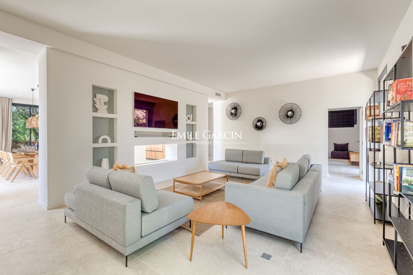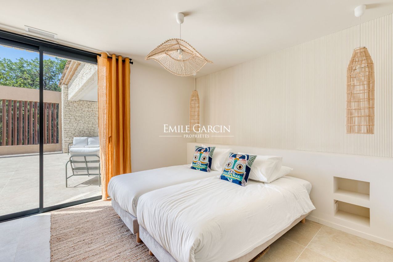 Idéalement située à Cabrières d'Avignon, au coeur du triangle d'or du Luberon, cette élégante propriété offre un cadre de villégiature raffiné entre nature et confort contemporain. La maison dispose de 6 chambres spacieuses et lumineuses avec leurs salles de bains privatives, complétées par un studio indépendant au bord de la piscine et un espace de jeux/bureaux. Elle peut accueillir jusqu'à 14 personnes, enfants inclus, dans un confort absolu. Les intérieurs sont lumineux et climatisés, dotés d'un mobilier élégant et d'une literie haut de gamme. La cuisine parfaitement équipée, le salon convivial avec cheminée à l'éthanol et les nombreux espaces de détente invitent à partager de précieux moments en famille ou entre amis. A l'extérieur, le jardin paysager abrite une superbe piscine de 13 x 5,50 m avec plage douce et sécurité volet roulant, un balcon offrant une vue dégagée sur les Alpilles et le Luberon, ainsi qu'un mobilier de jardin soigné pour profiter des longues journées ensoleillées. La villa bénéficie d'une situation privilégiée : à quelques minutes à pied des commerces du village et d'un bar-restaurant, et à courte distance de Gordes, Fontaine-de-Vaucluse, L'Isle-sur-la-Sorgue et des plus beaux villages perchés du Luberon. Une adresse idéale pour un séjour inoubliable en Provence. Nous contacter pour plus de renseignements.