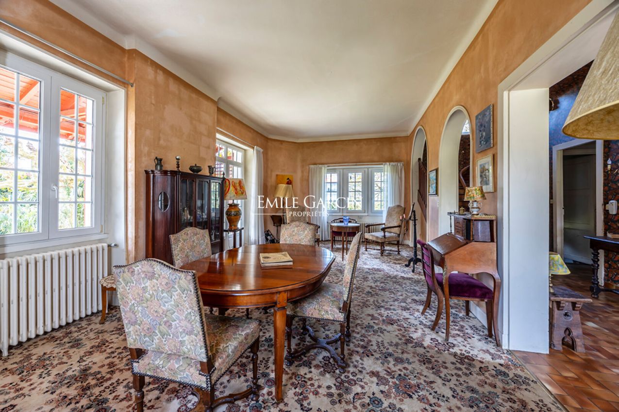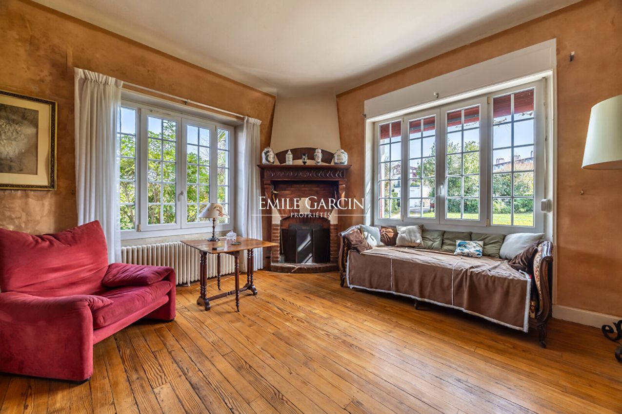 Située dans un environnement paisible et verdoyant, au coeur d'un quartier prisé de Bayonne, « Ohantzia », le nid en basque, élégante maison basque édifiée en 1926, incarne le charme intemporel des demeures de caractère. Propriété familiale depuis 1967, elle a traversé les générations en conservant son authenticité et son âme. Développant environ 205 m² environ( loi carrez), la maison s'inscrit sur un magnifique terrain arboré de 2 089 m², véritable écrin de verdure sublimé par un majestueux magnolia en son centre. Dès l'entrée, le ton est donné : le salon, spacieux et lumineux, accueille une superbe cheminée basque qui réchauffe l'atmosphère et crée un point focal chaleureux.