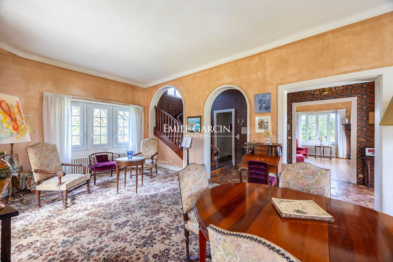 Les volumes généreux, les hauteurs sous plafond remarquables et les proportions harmonieuses mettent en valeur l'architecture d'époque, et le magnifique escalier principal structure la maison avec élégance. Les fenêtres à double vitrage offrent une vue imprenable sur le jardin et baignent l'espace de lumière naturelle, tout en garantissant confort et isolation.