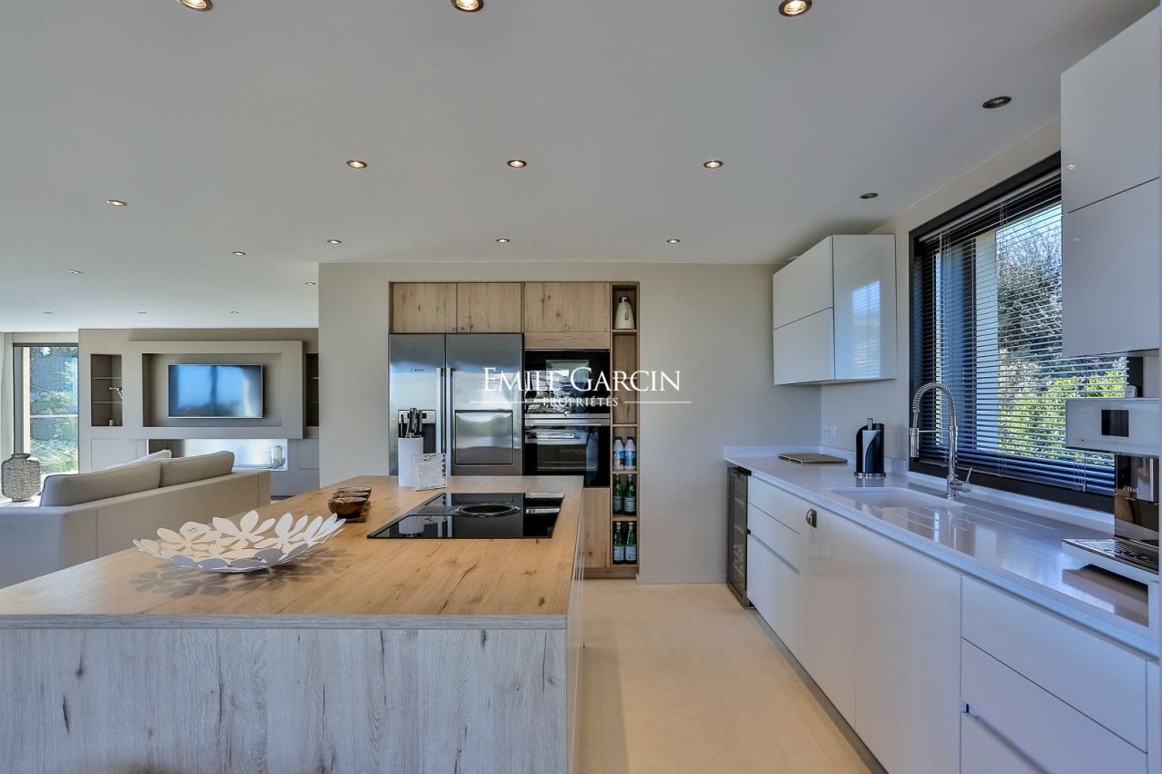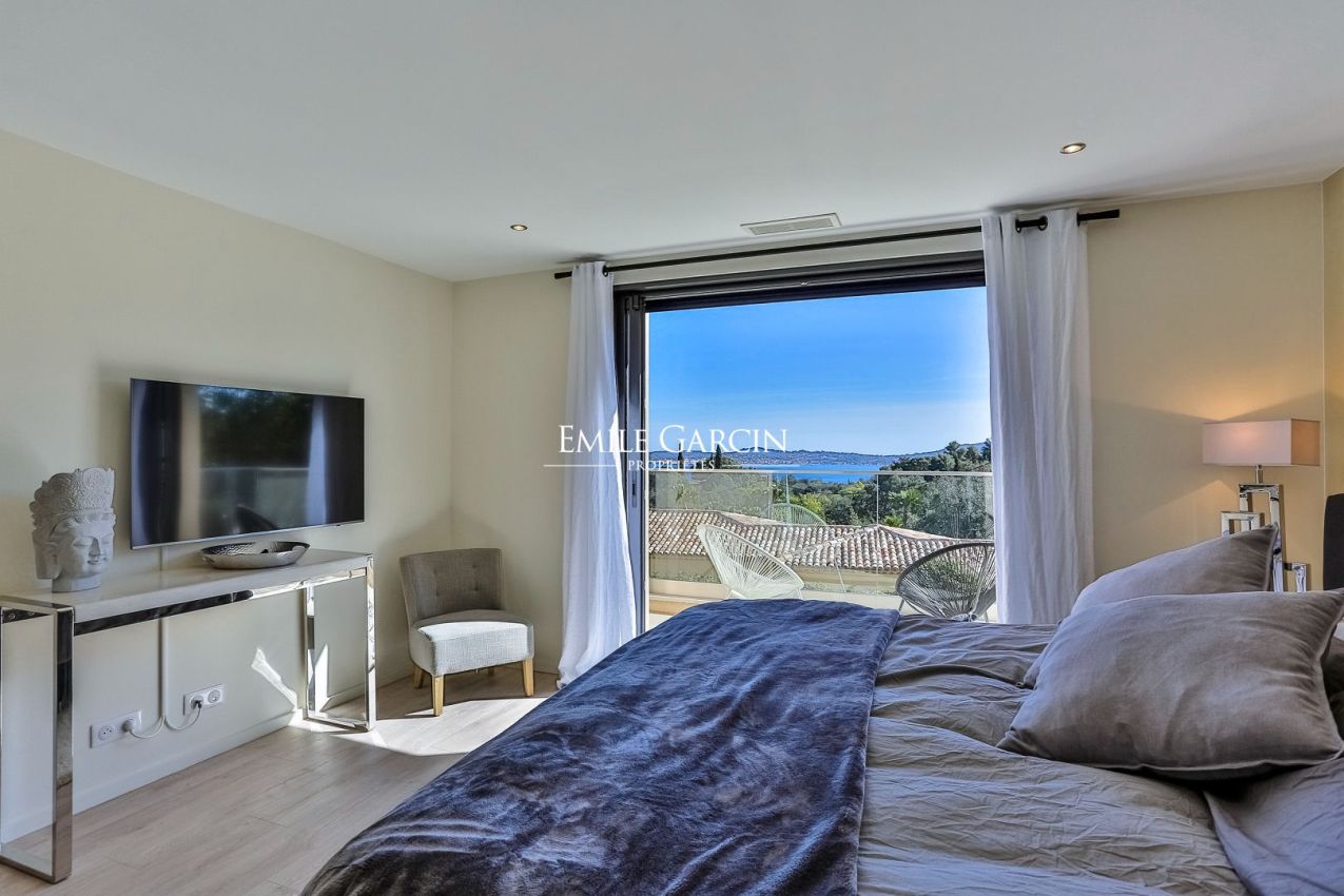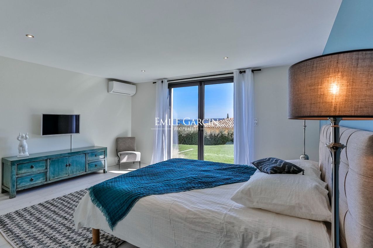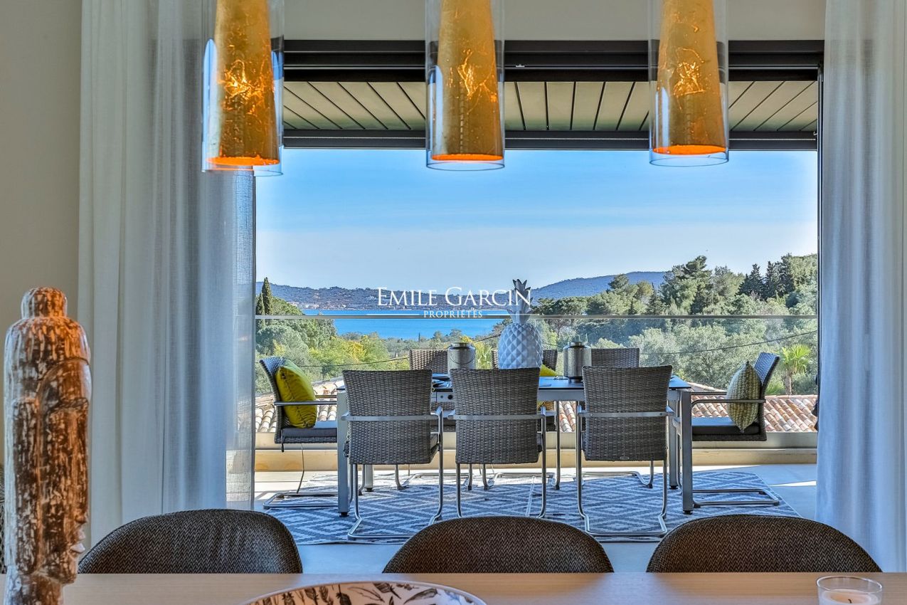 Située sur les hauteurs du prestigieux Golf de Beauvallon à Grimaud, cette villa contemporaine de 300 m² offre un cadre exceptionnel avec une vue imprenable sur le Golfe de Saint-Tropez. Édifiée sur un terrain de 2 000 m², cette propriété récente séduit par son architecture élégante et sa décoration scandinave. Ses vastes espaces de vie, baignés de lumière, s'ouvrent sur l'extérieur, où une piscine chauffée de 10x4m et un hammam invitent à la détente. A proximité immédiate du Golf Club, elle dispose de 4 chambres avec salles de bains, garantissant confort et intimité.