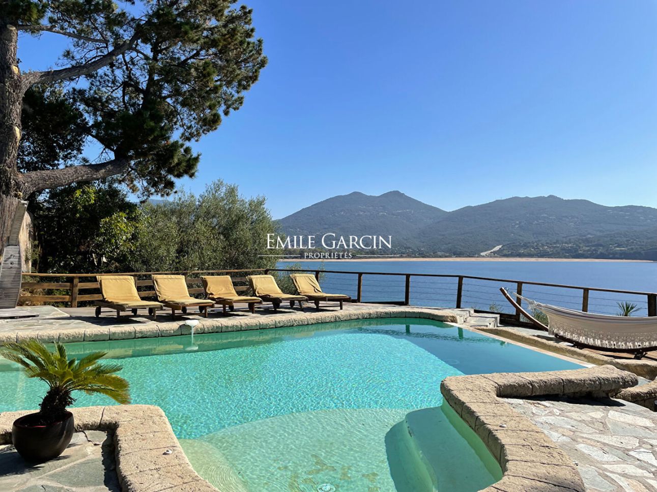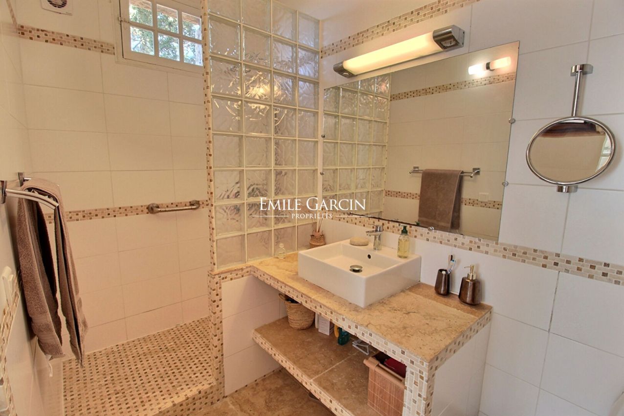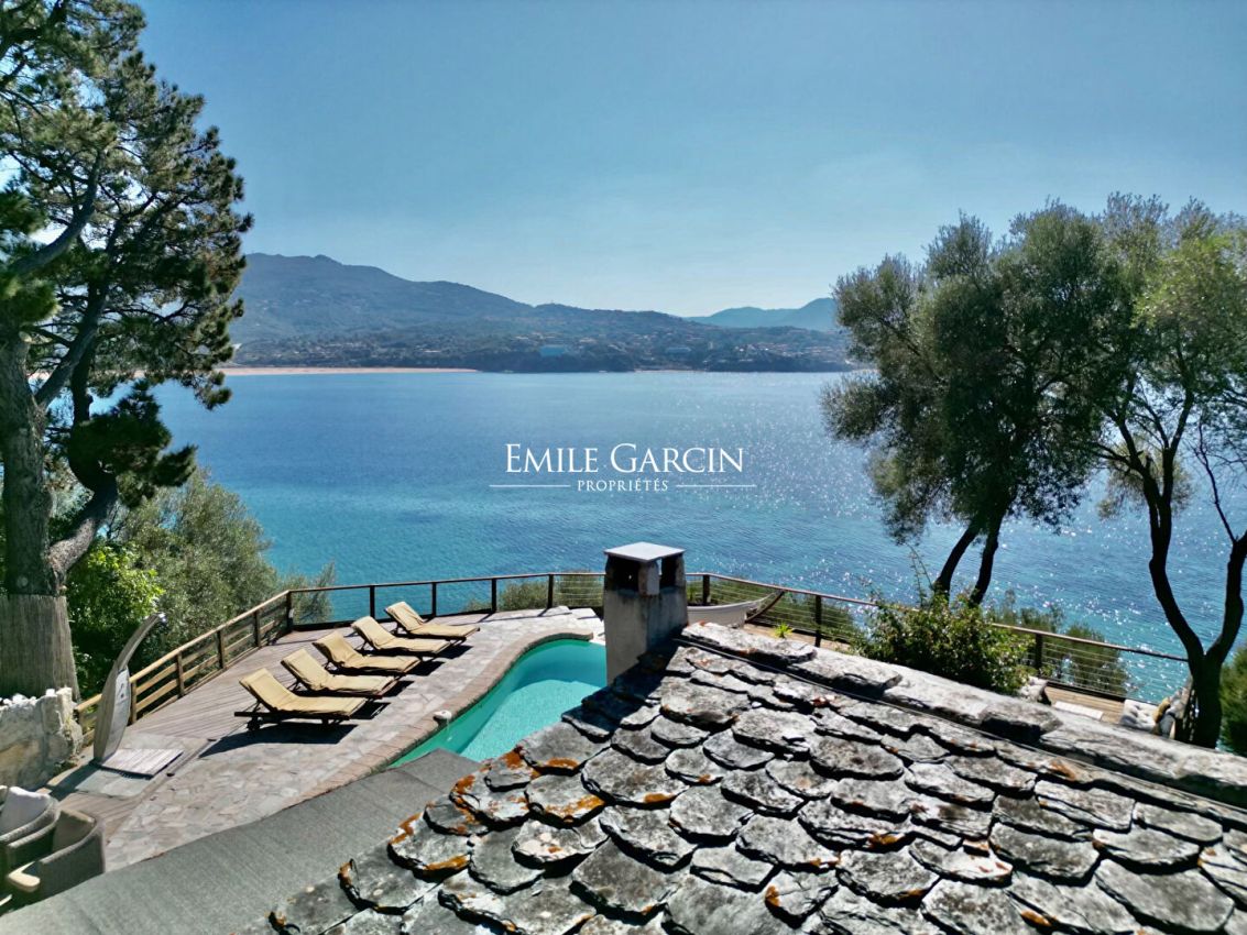 Accompagnée d'une piscine de 7m x 3.5m, cuisine d'été. La plage est accessible en moins de 2 min à pied via un escalier privatif. Mouillage pour bateau possible au pied de la propriété.