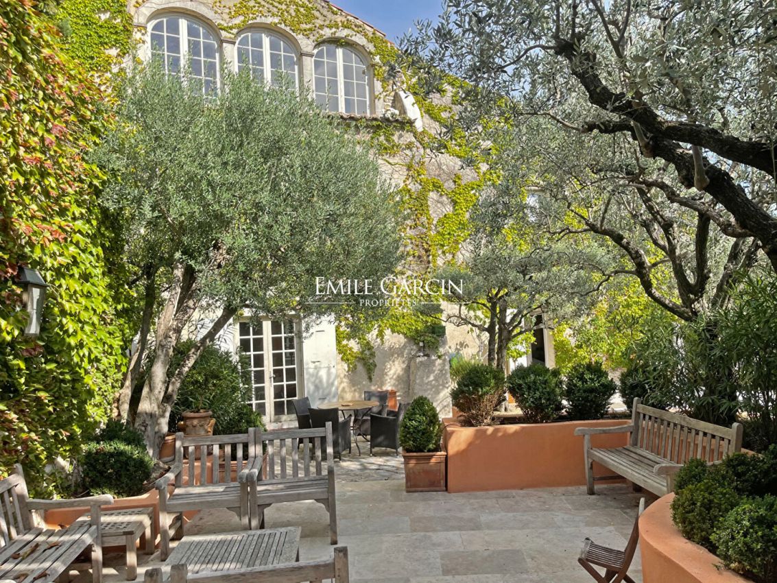 Located in the heart of a village served with shops, this beautiful 18th century mansion presents approximately 600 sq.m of living area on four levels, an interior courtyard and several outbuildings. It features vaulted ceilings, an immaculately restored interior, high levels of comfort and bright, spacious rooms. The main house comprises a large entrance hall, a kitchen, a dining room, a double living room, six bedrooms (including suites), five bathrooms/shower rooms, six WCs, a dressing room, a home office, a gym, a billiards room, a workshop and cellars. Outside, you will find a hanging garden, a heated swimming pool with cover (8 x 4m) and al fresco dining facilities. There is also a large garage and a beautiful roof terrace offering a panoramic view of the Dentelles de Montmirail and the valley. An adjoining house to restore of approximately 140 sq.m could serve as accommodation for friends or staff. 15 minutes from the A7 motorway, 30 minutes from Orange TGV station, 1 hour 15 minutes from Marseille-Provence airport.