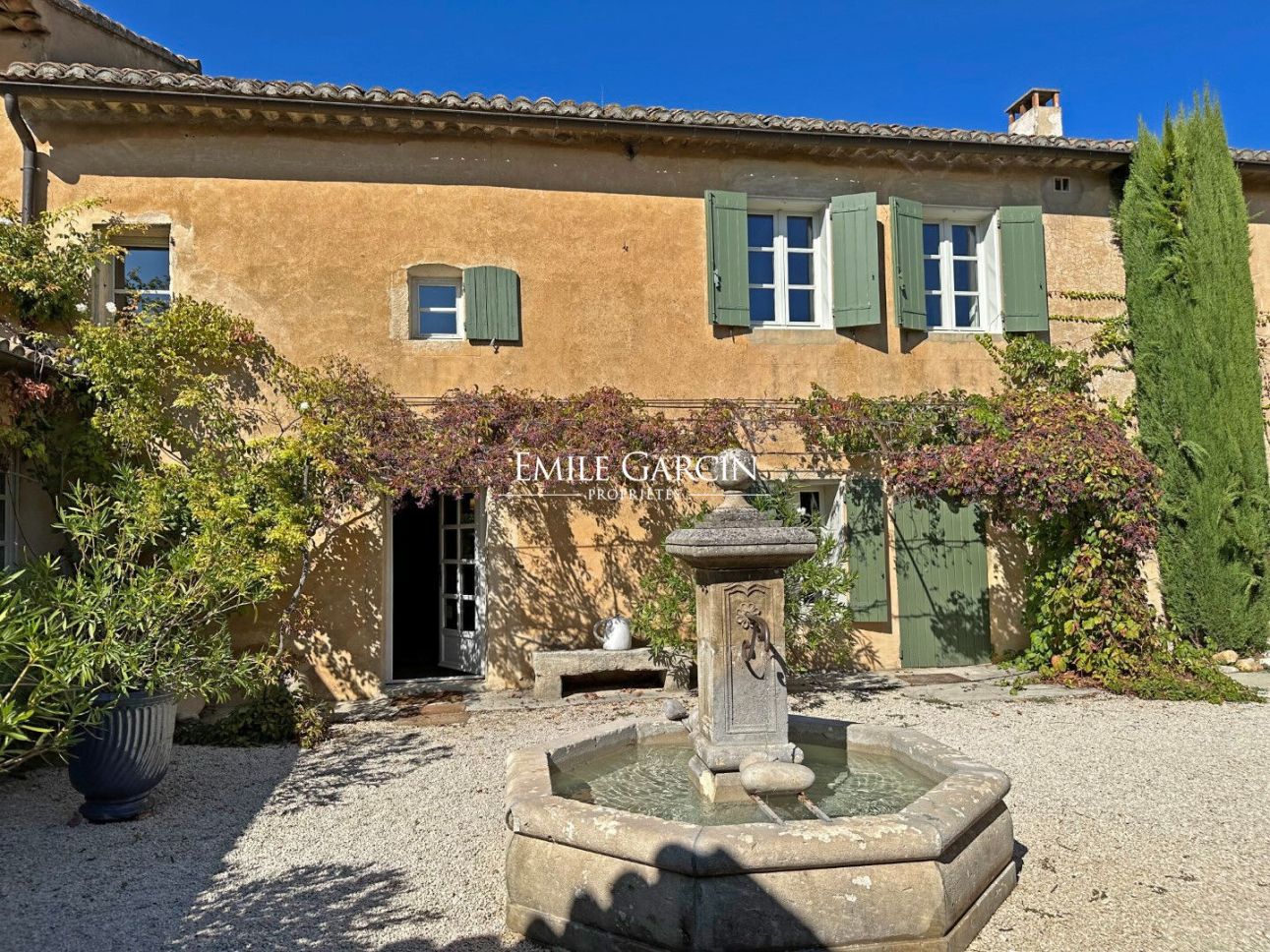This farmhouse of just over 360 sq.m is surrounded by some of the most beautiful villages of the Luberon, with Gordes, Ménerbes and Oppède-le-vieux all within easy reach. The current owners have fully renovated the property with much taste, producing a perfect blend of period charm and modern comfort. It is accessed via a beautiful avenue of cypress and olive trees, leading to the car park. The rest of the property can only be explored by foot, with a pretty gate offering access to the internal courtyard and its magnificent fountain. The main entrance hall leads to a dining room, a living room with Luberon stone fireplace, a bedroom with shower room and WC, a large sociable kitchen, a pantry and workshop and two shaded terraces. Upstairs, you will find beautiful ensuite bedrooms. Through the interior courtyard, there are two other ensuite bedrooms. A magnificent pool house is fully equipped as accommodation for friends and family, alongside a natural-coloured swimming pool and a perfectly landscaped garden. Set a little further back from the many relaxation areas, you will find the pétanque area. The current owners have obtained a building permit for more than 220 sq.m convert the farm outbuildings and shed into a further reception area or separate caretaker's house. The property is surrounded by just over 2.4 hectares of land that begs to be landscaped. Existing facilities include central heating, air conditioning, fibre broadband and a swimming pool.