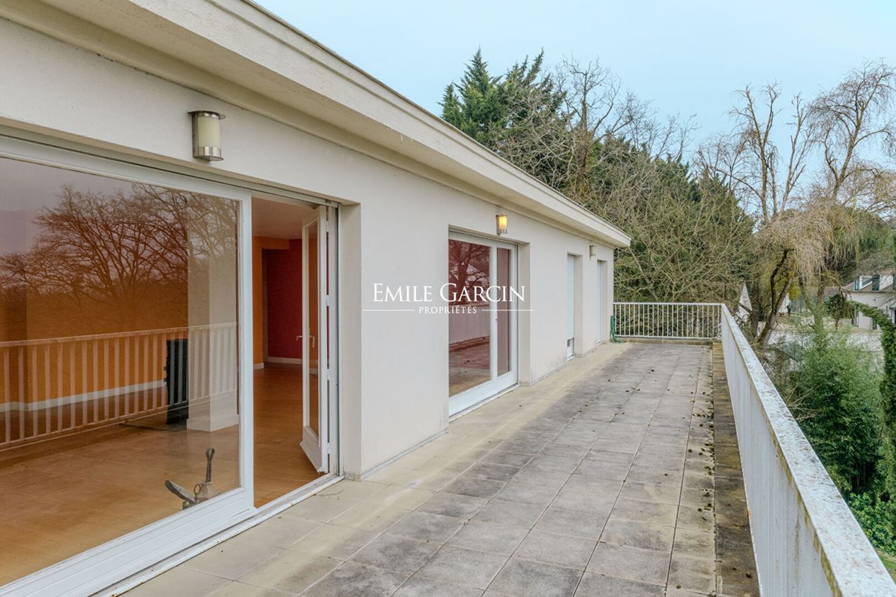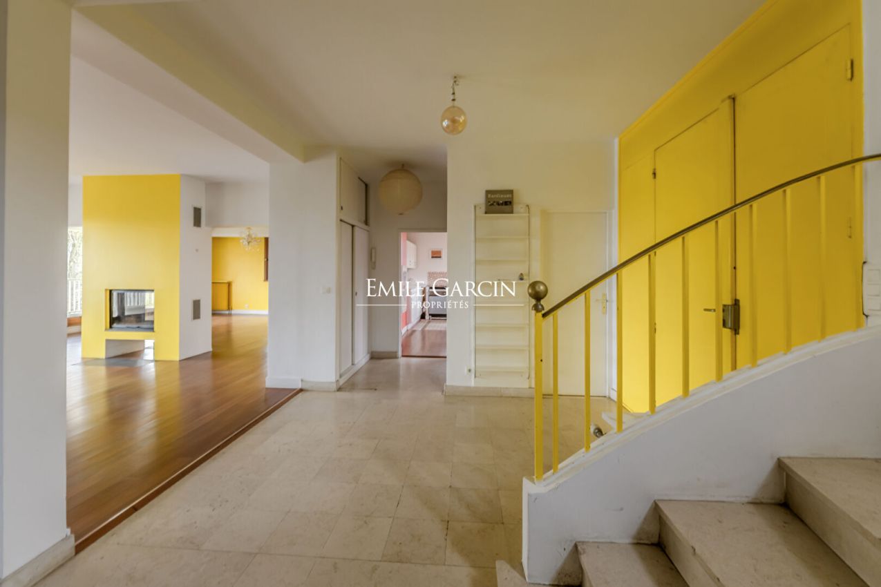 Nestling in the heart of a sought-after green area of Feucherolles, just 3 km from Saint-Nom-la-Bretèche and 12 km from Saint-Germain-en-Laye, this magnificent property presents 560 sq.m of living area. Sitting on 2,310 sq.m of private grounds, it stands out for its spacious and bright interior. Spread over four levels, this family home comprises a large living space of 83 sq.m including a lounge with central fireplace, a dining room and a large kitchen, all backing onto a 40 sq.m south-facing terrace. Upstairs, you will find a 57 sq.m master suite with dressing room and private bathroom, and six other bedrooms with three shared bathrooms. There is also a large landing converted into an office space/library and a relaxation area. The light and airy garden level offers a versatile space of 75 sq.m (ideal for a games room, gym or music studio), as well as a bedroom with shower room and an independent studio of 26 sq.m. Additional facilities include a double garage and several outdoor parking spaces. In need of renovation work. Nearby: primary and secondary schools, school buses and the Lycée International; quick access to train stations and the A13/A14 motorways (serving La Défense and Paris).