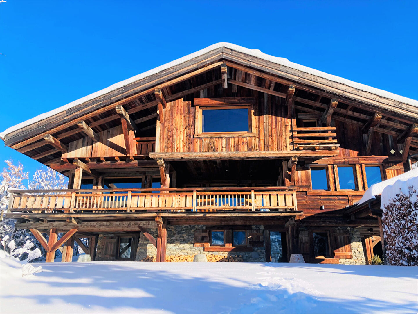 Located in the most sought-after area of Mont d'Arbois, next to the Four Seasons Hotel and the ski slopes, this magnificent chalet presents approximately 438 sq.m of living area built in 2011. It comprises a cathedral living room with fireplace and large terrace with open views of the surrounding mountains, an equipped open kitchen, a dining room, seven ensuite bedrooms, a home cinema, a swimming pool with hot tub, a wine cellar, a fitness area, a ski room and a large garage.