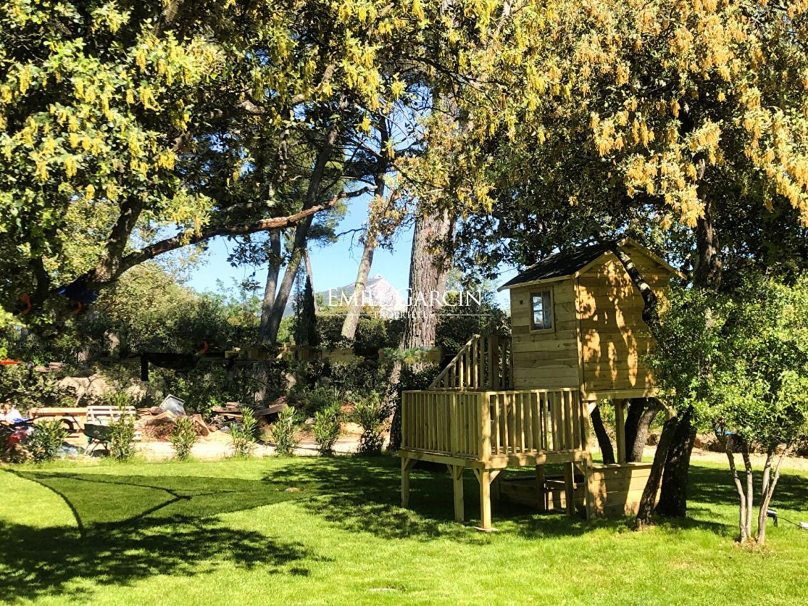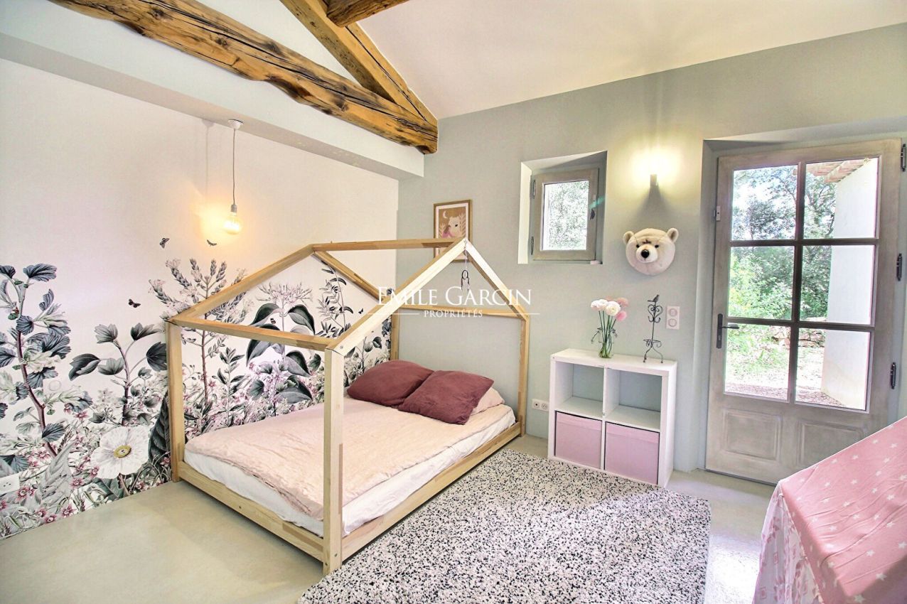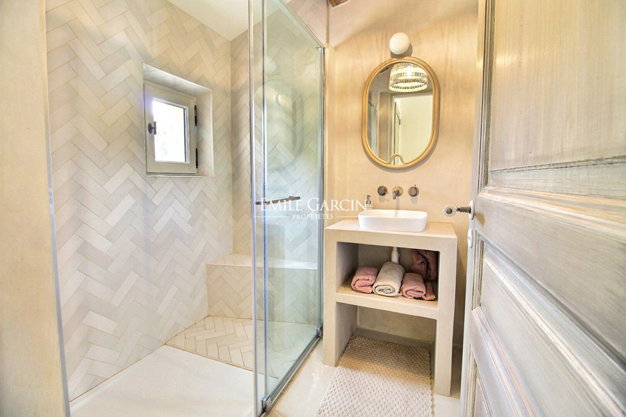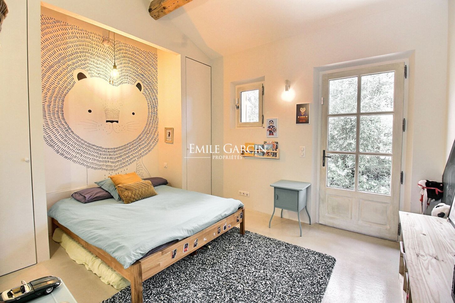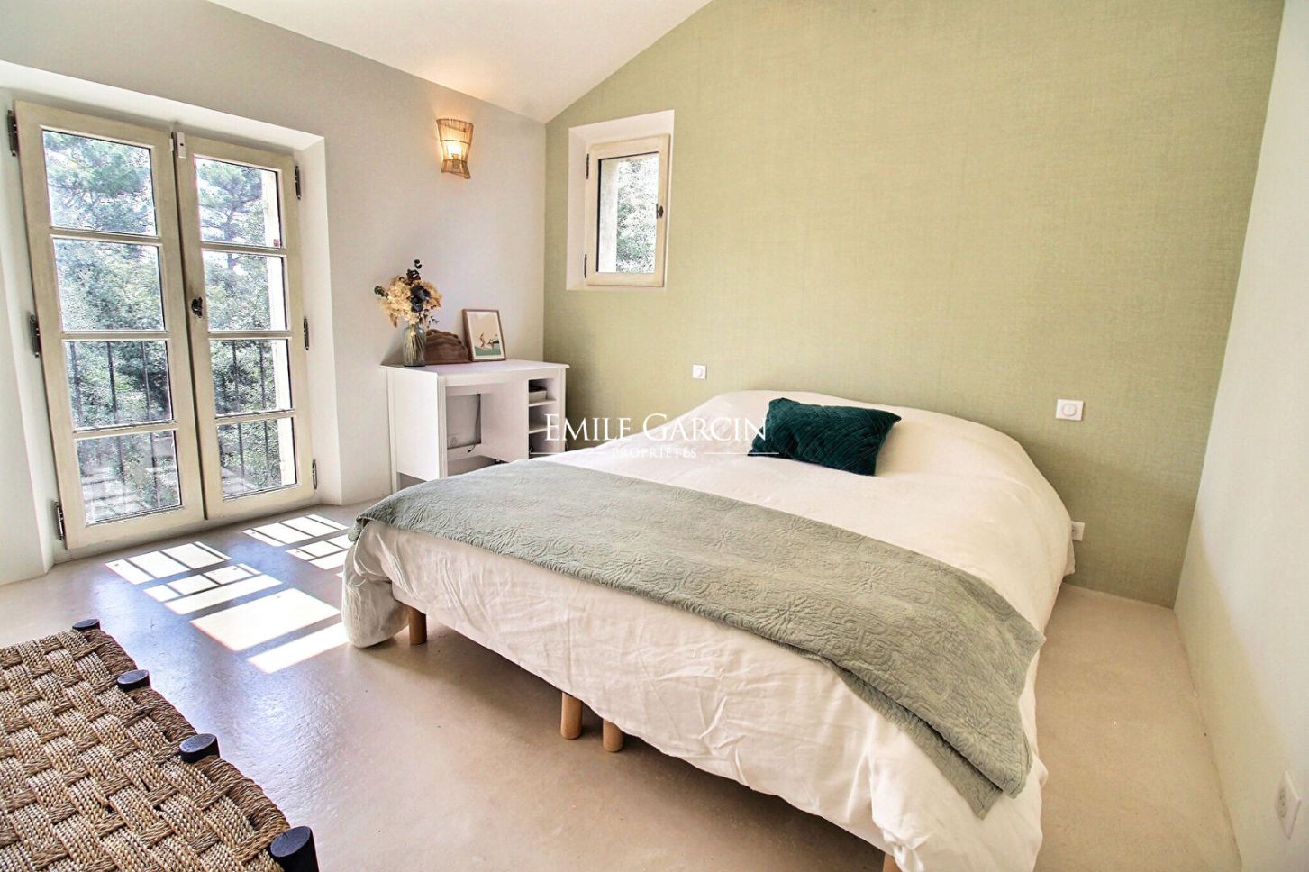 Mas des Airelles, nestled in the peaceful countryside near Aix-en-Provence in Saint-Marc-Jaumegarde, is ideal for a holiday with family or friends. The house features five bedrooms, including a master suite, two children's bedrooms, and three comfortable bathrooms. The garden boasts a swimming pool, a fully equipped pool house, and a pétanque court, perfect for enjoying the beautiful summer days in Provence. Located close to Aix-en-Provence, the property offers tranquility and convenience in a protected natural setting. While the house does not have air conditioning, underfloor cooling on each level helps maintain a comfortable temperature during the summer months. Sleeps 6 adults and 4 children.