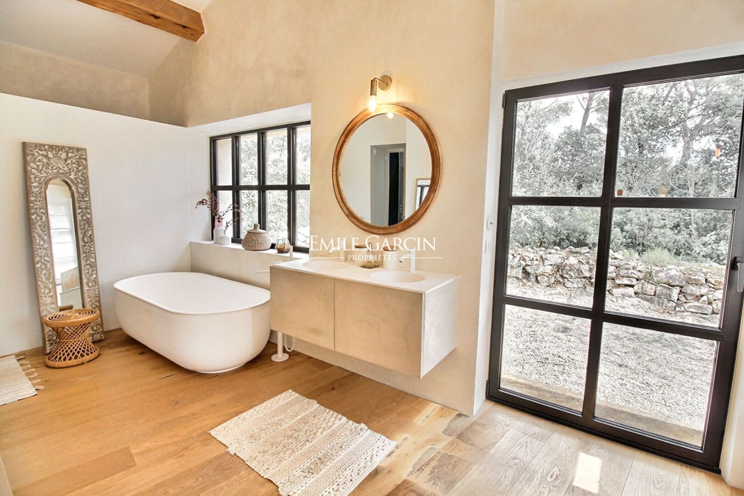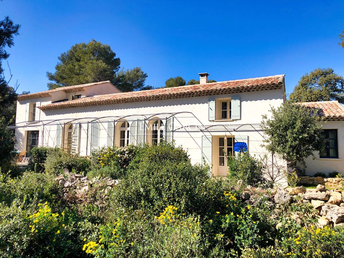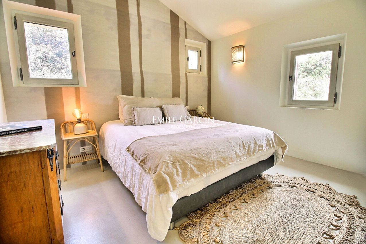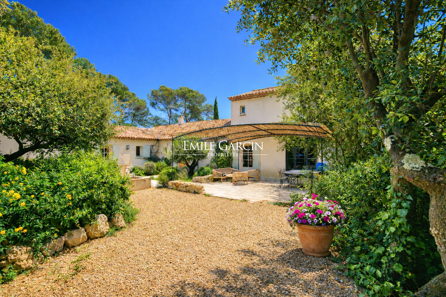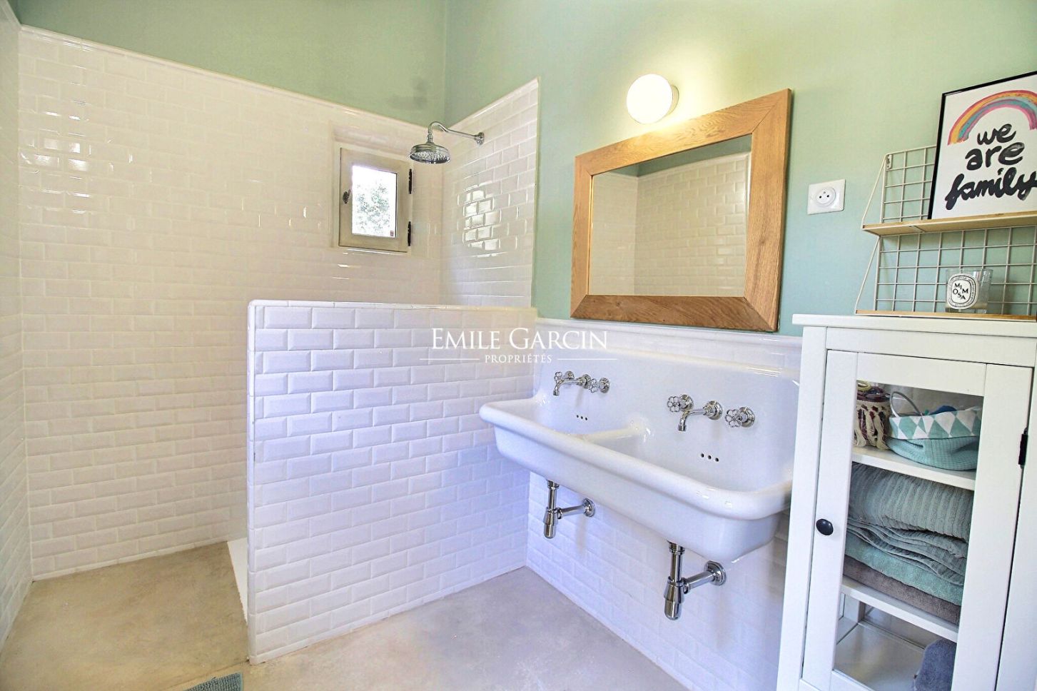 Mas des Airelles, nestled in the peaceful countryside near Aix-en-Provence in Saint-Marc-Jaumegarde, is ideal for a holiday with family or friends. The house features five bedrooms, including a master suite, two children's bedrooms, and three comfortable bathrooms. The garden boasts a swimming pool, a fully equipped pool house, and a pétanque court, perfect for enjoying the beautiful summer days in Provence. Located close to Aix-en-Provence, the property offers tranquility and convenience in a protected natural setting. While the house does not have air conditioning, underfloor cooling on each level helps maintain a comfortable temperature during the summer months. Sleeps 6 adults and 4 children.