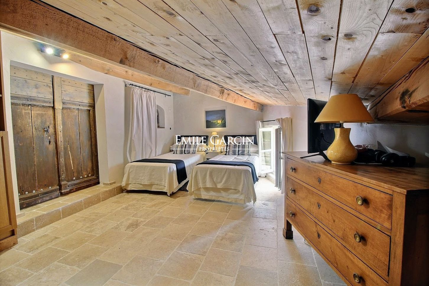 In the heart of Provence, Mas de Suffren is an authentic sheepfold renovated with high-quality materials that blend seamlessly into the surrounding nature. Completely secluded, the stone building, typical of southern architecture, is an invitation to relaxation. The main Grand Mas comprises 6 double bedrooms and 6 bathrooms, a large kitchen/dining room, a living room, and an office. The Petit Mas has 3 double bedrooms and 3 bathrooms, a kitchen/dining room, and a living room. The Grange includes a double bedroom, a 4-person dormitory, 2 bathrooms, and a 100 sqm games room (bar, billiards, home cinema, foosball). Sleeps 20 adults and 4 children/teenagers. Heated 12 x 6 m swimming pool. 11 hectares of grounds. All bedrooms are air-conditioned.