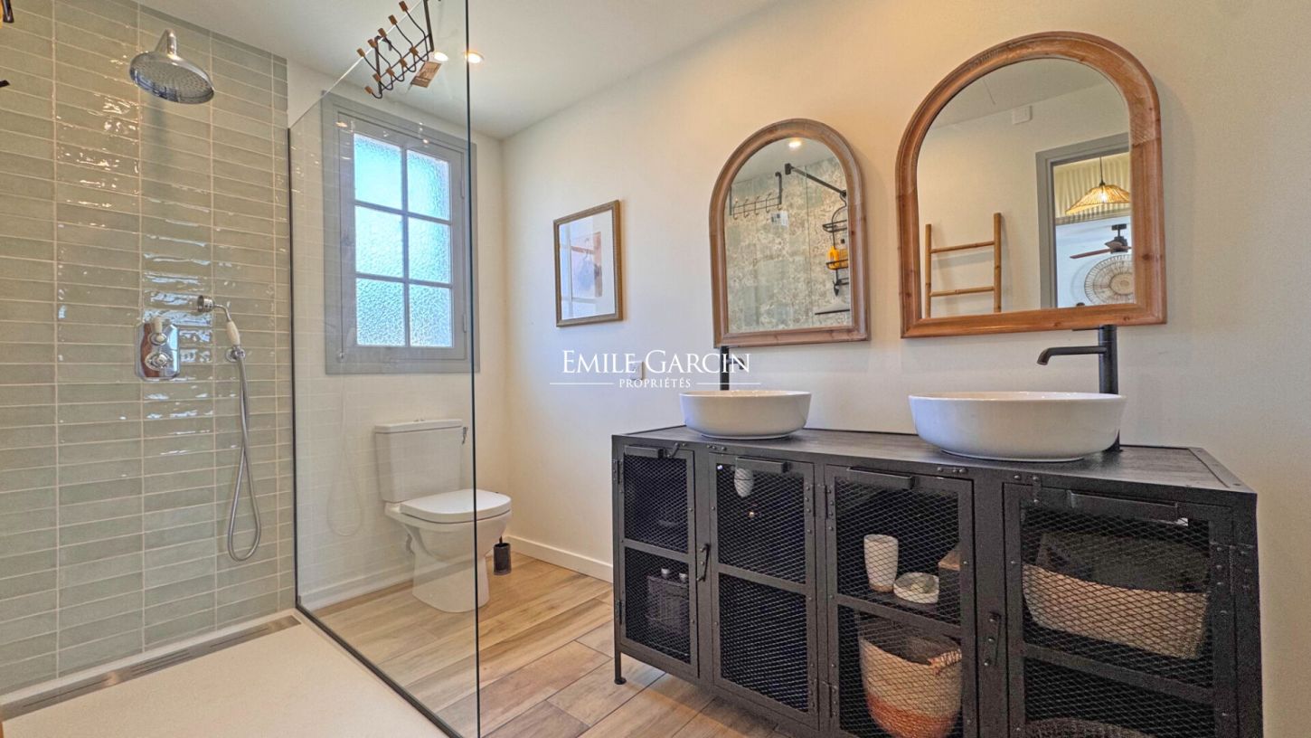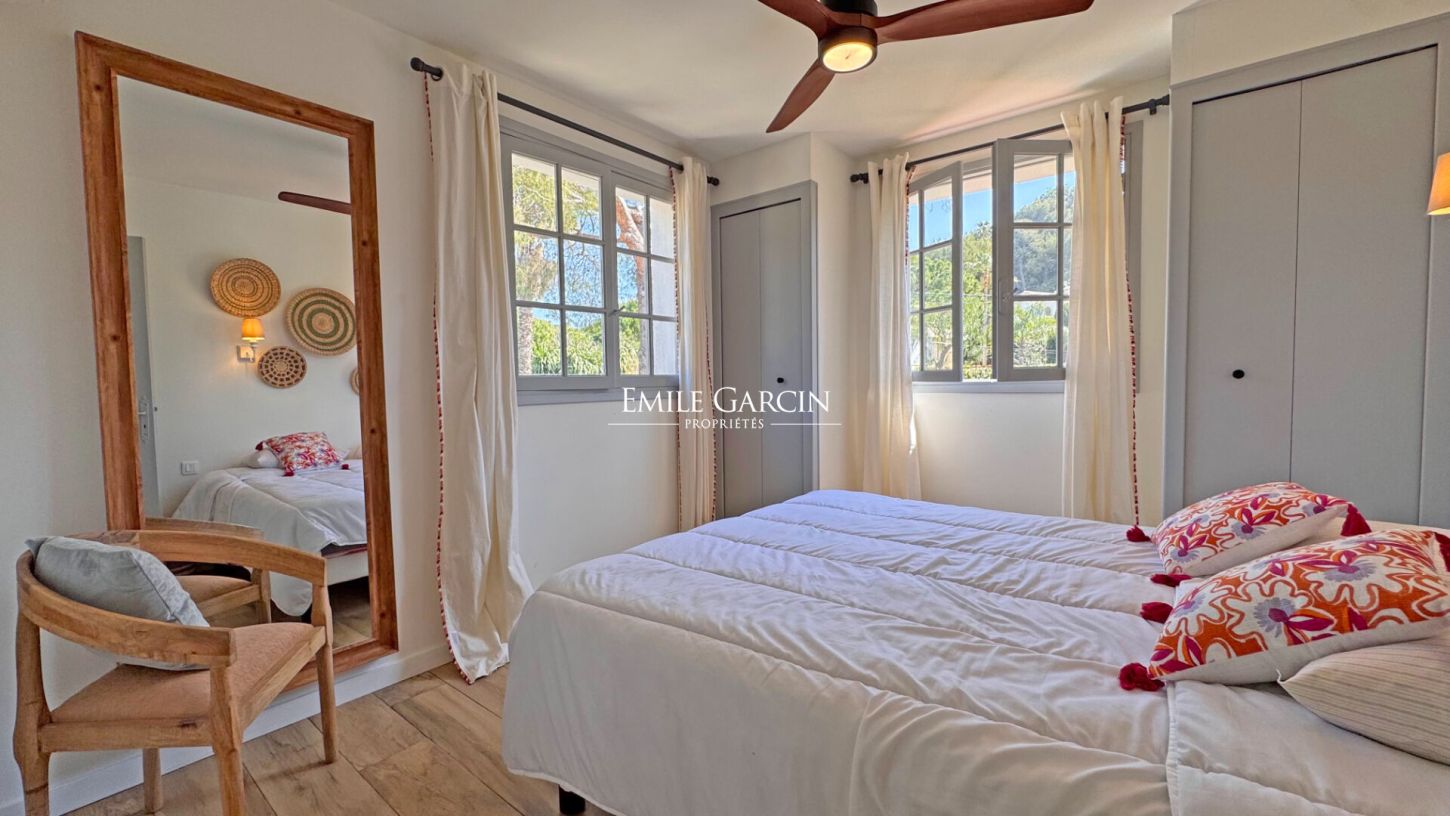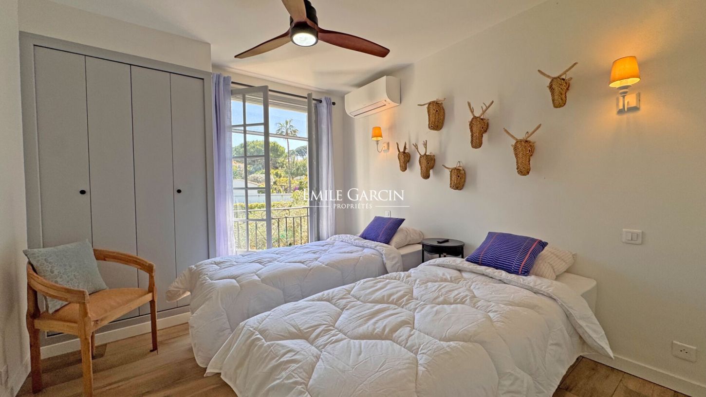 Just 100 metres from the beaches of Cap d'Antibes and the charming port of l'Olivette, this house, completely renovated in 2025, offers an exceptional location. It has 5 bedrooms, including 4 in the main house with 3 full bathrooms, and a fifth bedroom in the outbuilding. The flat garden, bordered by a large lawn, has a small swimming pool ideal for cooling off, a barbecue and a garage. Perfect for a family holiday, this property combines modern comforts with a relaxed lifestyle, just a stone's throw from the sea.