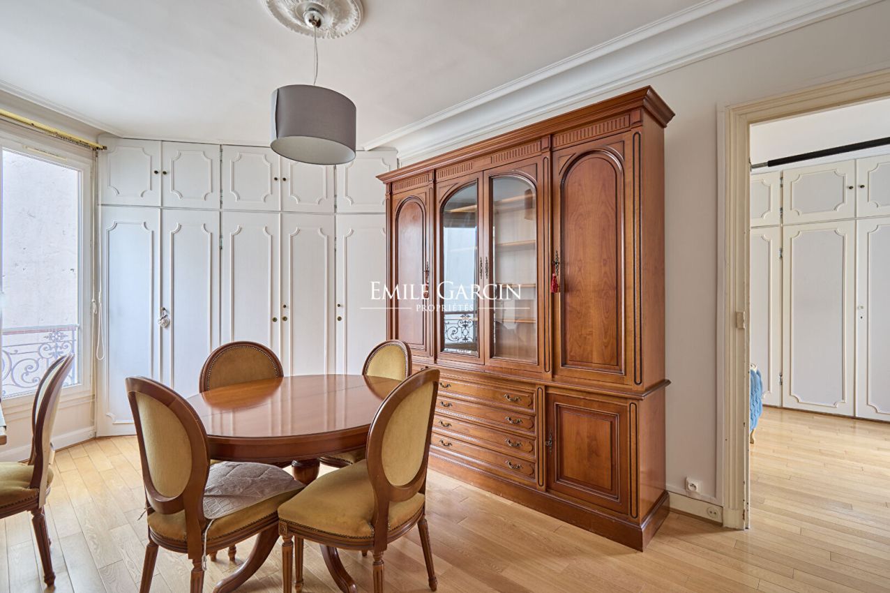 Close to the Square Montholon, in a building year 1867, this charming apartment on three courtyards (triple exposure), bright in absolute calm, with an area of 80 m² floor (79.60 m² Loi Carrez) is located on the fifth floor by elevator comprising: entrance, living room, dining room, two bedrooms, separate kitchen, bathroom and toilet. Its classic and optimized plan, charm with moldings and fireplace. Condominium well maintained. Work to be planned. Popular location.
