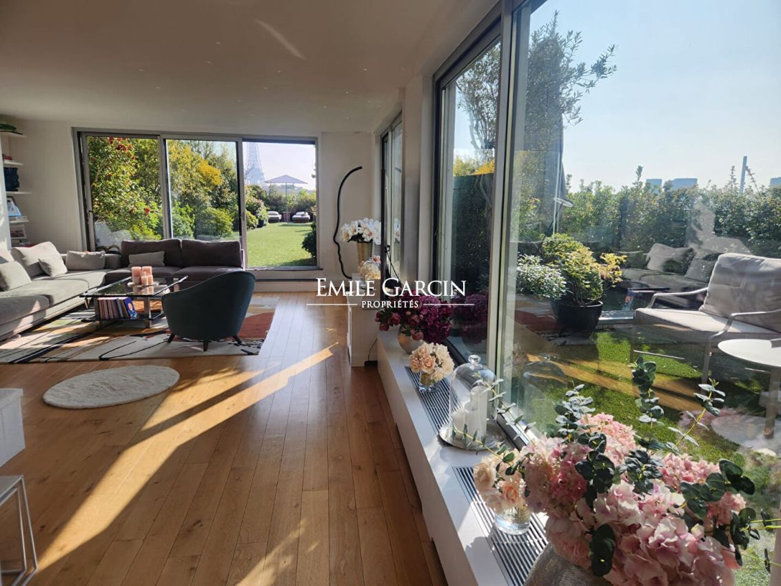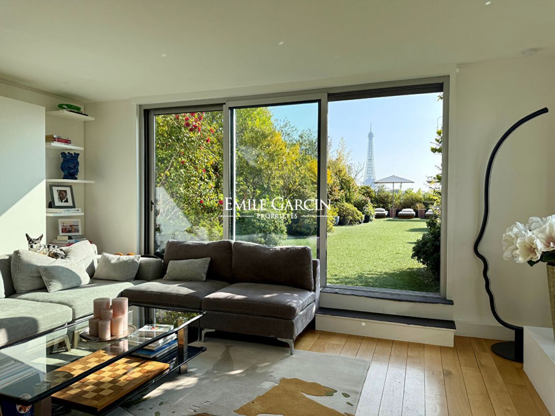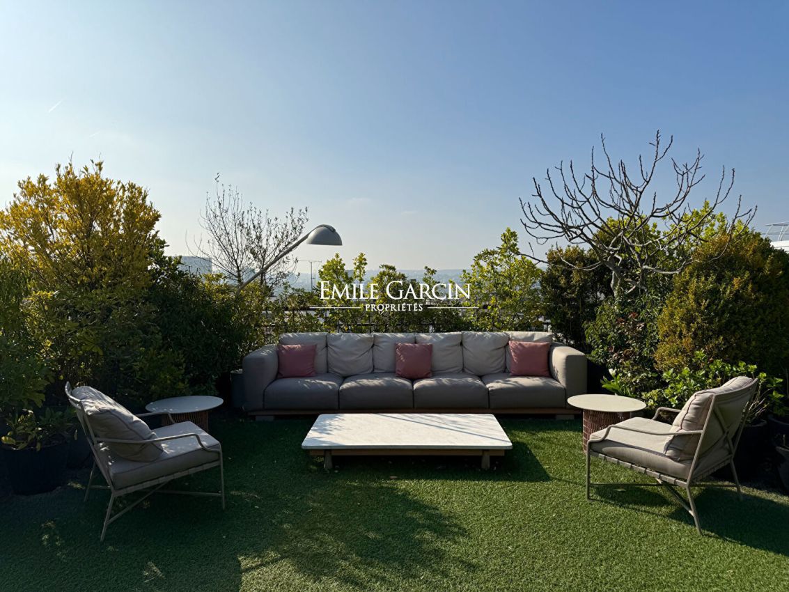 Exceptional - On the top floor of a building, a 170 sq m (Carrez law) apartment with a private terrace of approximately 600 sq m. Entrance hall, living room with fireplace, dining room, kitchen and laundry room, 3 bedrooms, 3 bathrooms. All rooms open onto the terrace. Parking space, cellar, and caretaker.