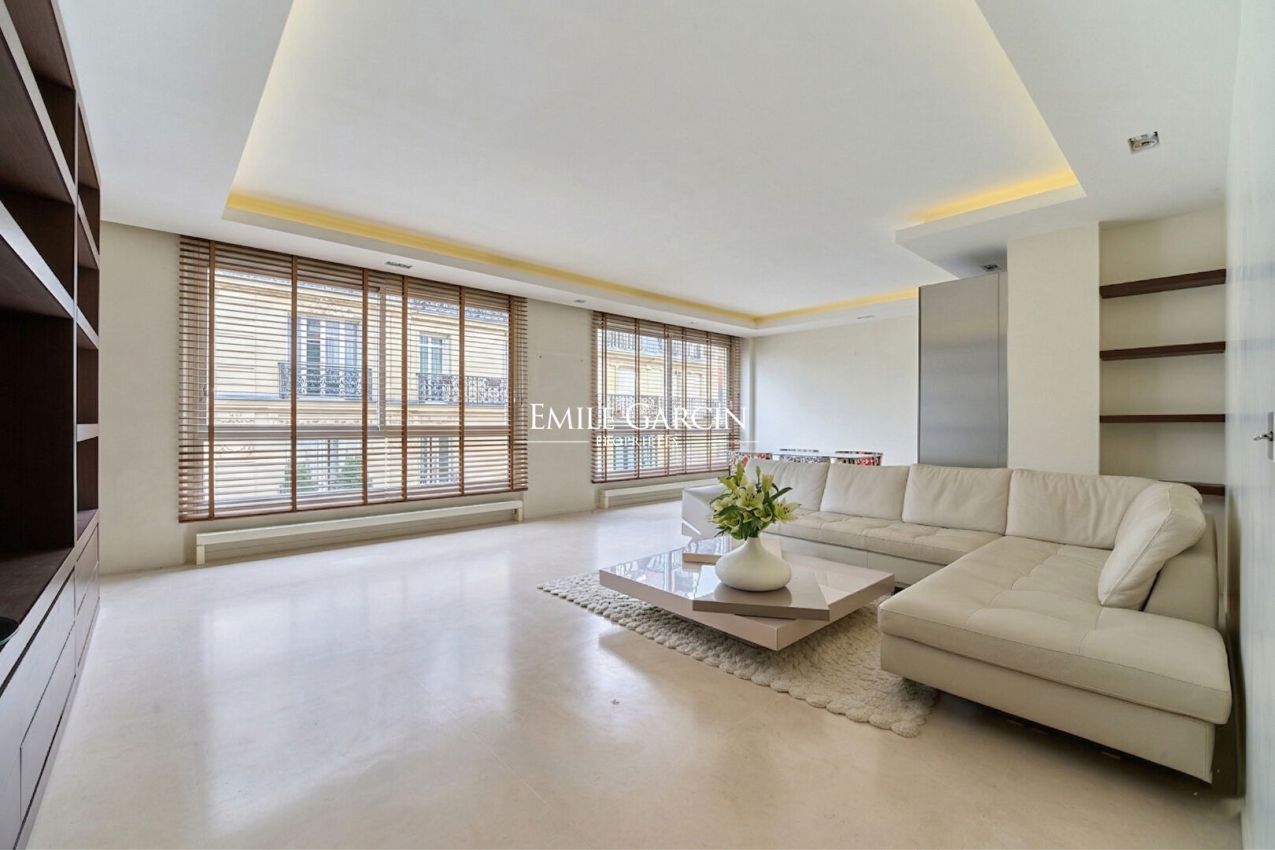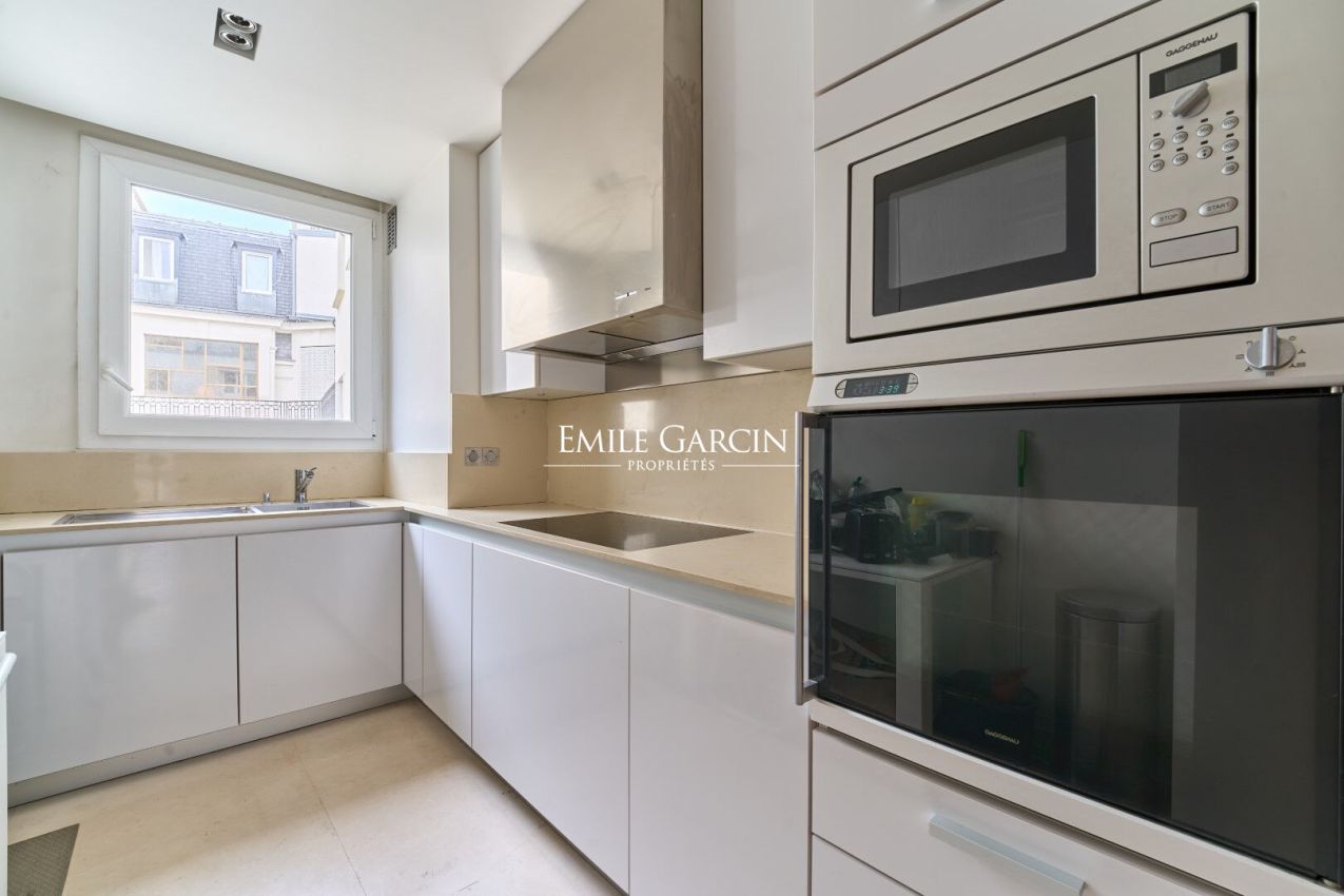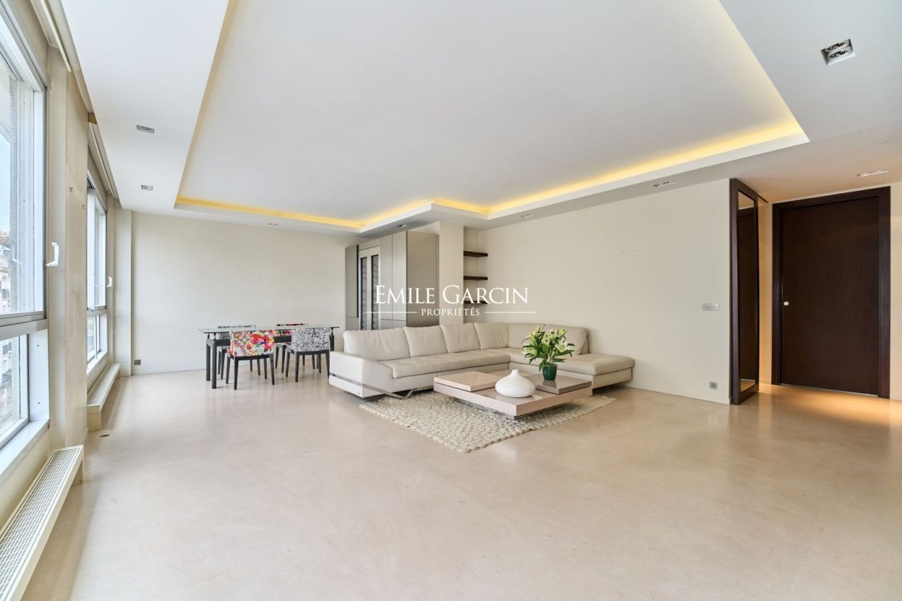 In the heart of the prestigious Chaillot district, a stone's throw from the Trocadéro and the most beautiful avenues of the 16th arrondissement, nestled on the 5th floor of an exceptional modern building with a stone facade, lies this exquisitely elegant 105 sq m apartment. Benefiting from beautifully maintained common areas, the entrance opens onto a spacious 41 sq m reception room with harmonious proportions, ideal for entertaining in style. This leads to a fully equipped kitchen designed to combine functionality and aesthetics. The perfectly arranged sleeping area comprises: an exceptional master suite with a full bathroom (walk-in shower, bathtub, double vanity, and separate WC) as well as ample custom-built closets; a second bedroom with an en-suite bathroom and built-in closet; and an office, ideally located between the living room and the master suite, which can easily be converted into a third guest bedroom. A guest toilet completes this fluid and functional layout. This rare property also includes two cellars and a private parking space on the second basement level of the building. A flexible haven of peace, combining contemporary elegance, modern comfort, and a prime location in one of the capital's most sought-after neighborhoods.