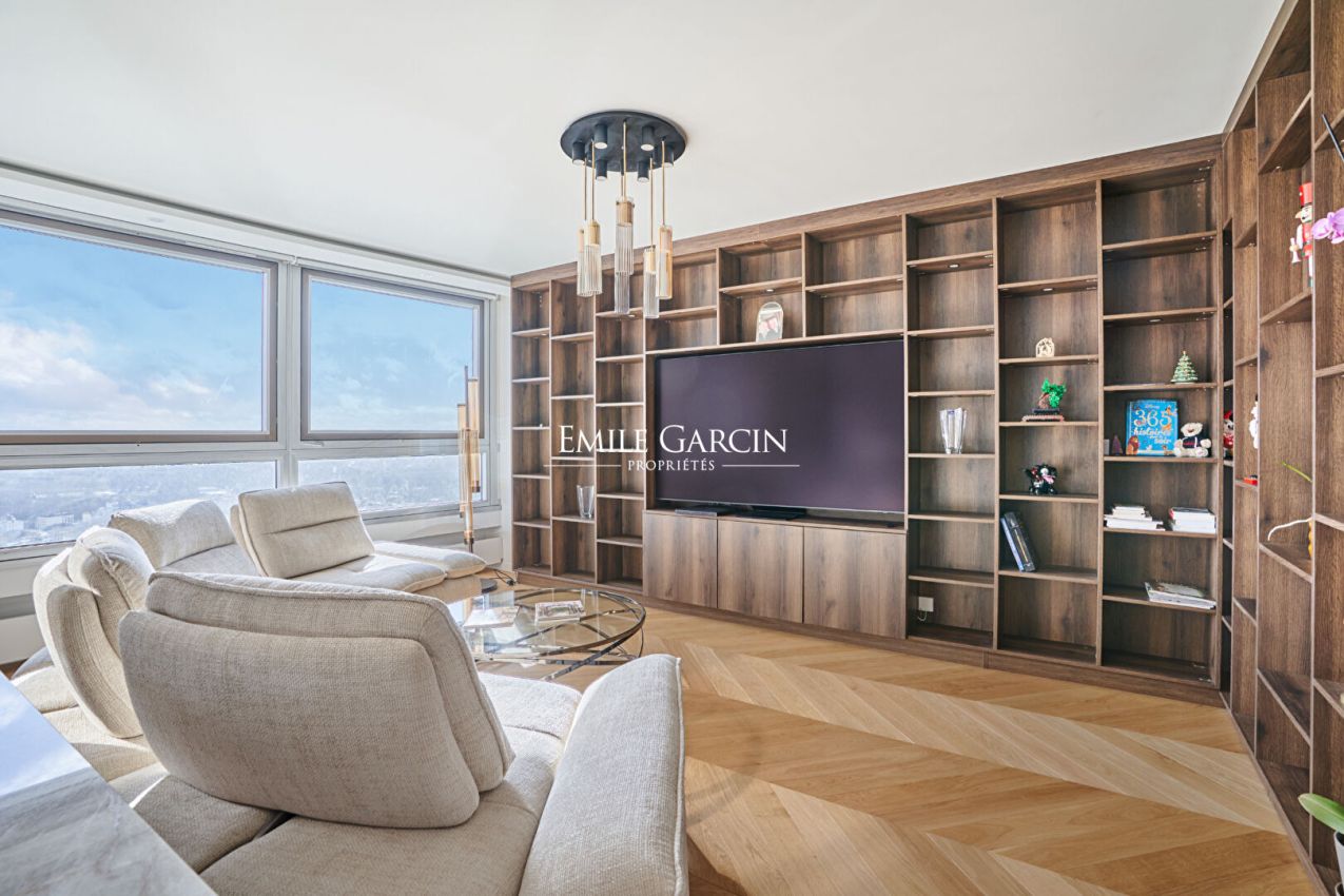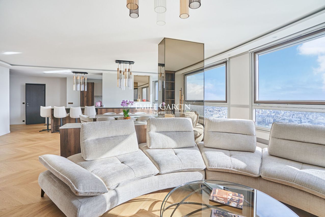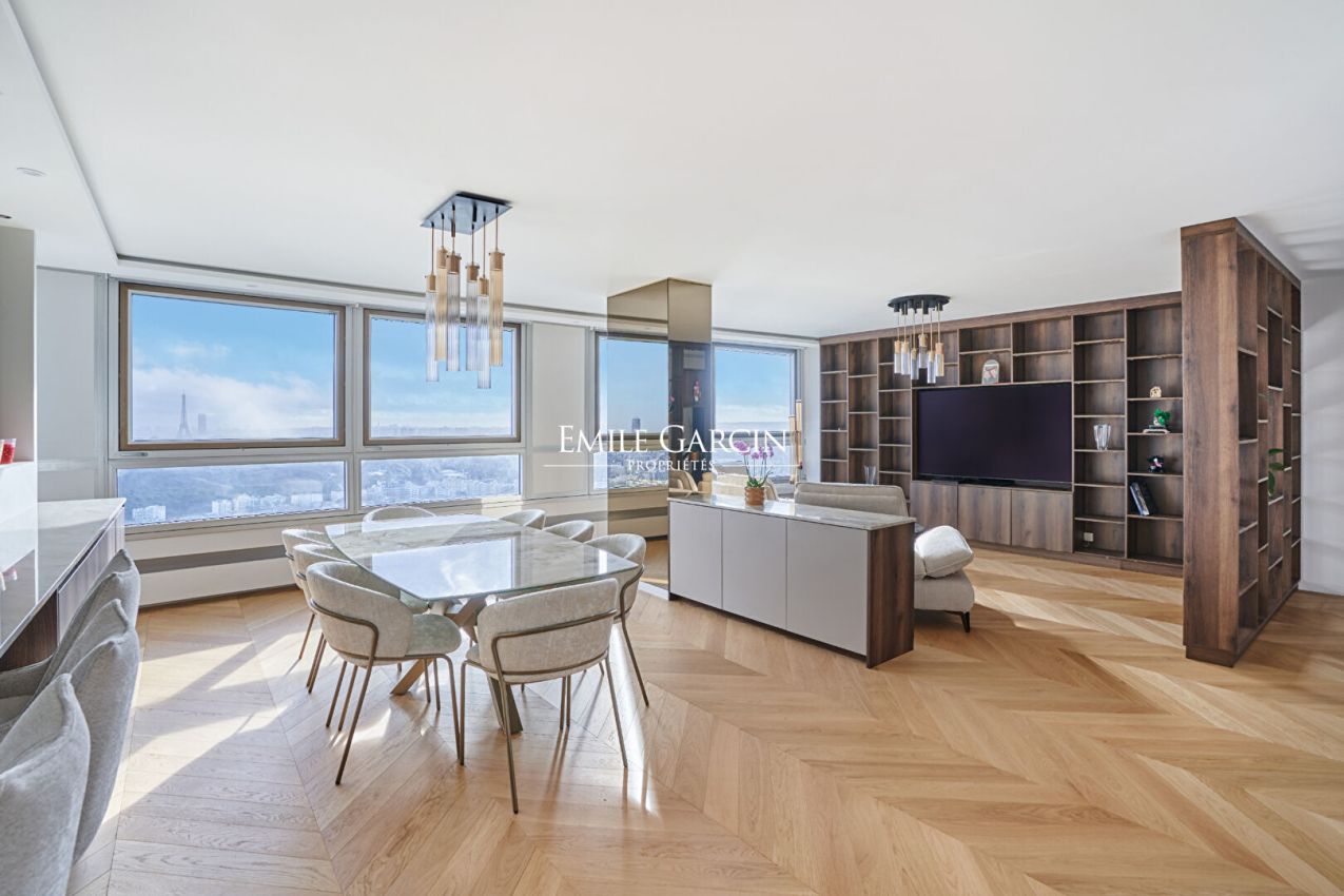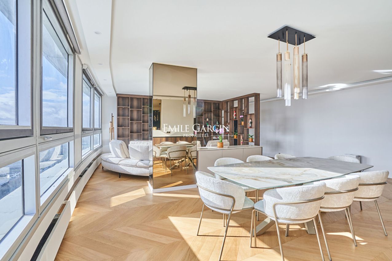 Located in one of Puteaux's most vibrant neighborhoods, close to the main shops and the Bellini district of La Défense, this magnificent apartment presents 147 sq.m of living area. Fully renovated by an architect and bathed in natural light, it offers a stunning panoramic view of Paris. This exceptional property is perched among the clouds in one of the upper floors of a prestigious tower block. It comprises two ensuite bedrooms (one of which has its own dressing room), as well as a spacious reception room with an open kitchen. Renovated using carefully selected materials, the property presents a high-end finish throughout. It is sold with two parking spaces and a cellar. Condominiums of 1810 units. Annual expenses : 9200 euros.