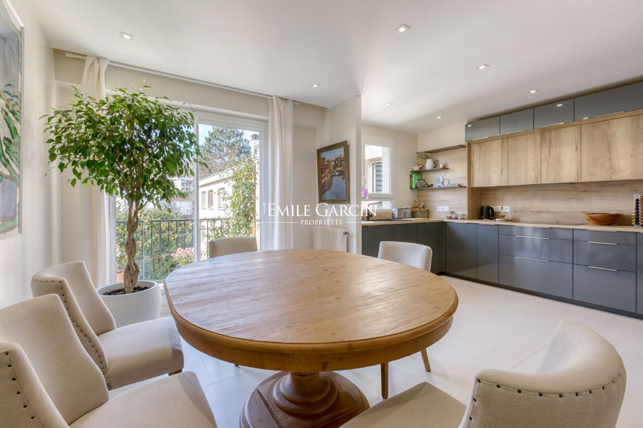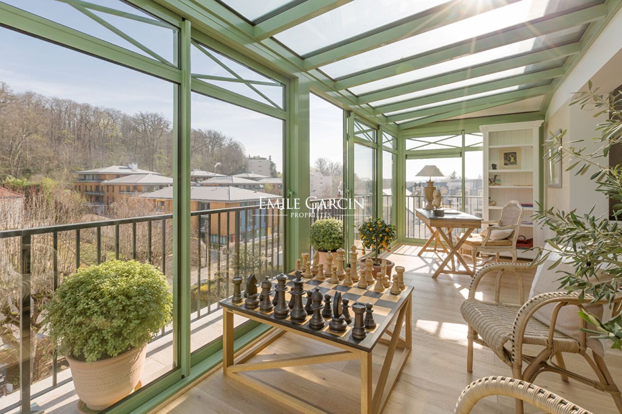 Located on the third floor of a small condominium with leafy grounds in a peaceful residential area of Ville d'Avray, this apartment presents 157 sq.m of fully renovated living area. Fully renovated with high quality materials, the property comprises an entrance, a beautiful reception room with glass roof and fireplace, a fully equipped kitchen-diner backing onto a long balcony, several cupboards, a large bedroom (which could be divided into two), a bathroom, a second bedroom, a home office (or third bedroom), a shower room, a utility room and a WC. Additional facilities include a lockup storage box (with the option for a second), a cellar and an outdoor parking space. Located close to the local shops and schools, the apartment would make an ideal family residence. Condominium charges: 2,595 EUR / quarter. Elevator access. Condominiums of 24 units. Annual expenses : 10380 euros.