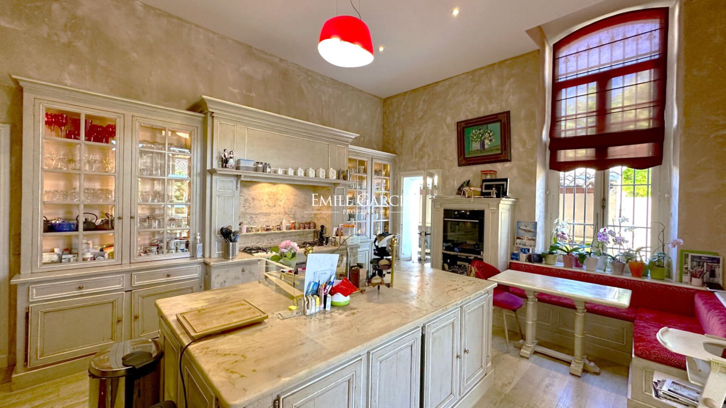 Located in the heart of Saint-Barnabé, this rare and authentic late 18th-century farmhouse sits on 850 sq.m of leafy grounds equipped with a swimming pool and a double garage. It offers approximately 450 sq.m of living area, including an entrance hall, a separate kitchen, a dining room, two living rooms (including one with a fireplace) and a home office. The master suite of approximately 80 sq.m comprises a bedroom with double dressing room, bathroom and shower. There is a second ensuite bedroom with a private office, and two other bedrooms with a shared shower room. You will also find a utility room on the same floor. The third floor, measuring approximately 60 sq.m, offers great potential for the creation of a separate apartment, a guest space or a professional premises. Outside, the garden features a swimming pool, a dining area and a double garage. This is a place steeped in history and tranquility, full of charm, having retained many of its original features. An ideal location, within easy reach of the local amenities and motorway exits. Further information available upon request.