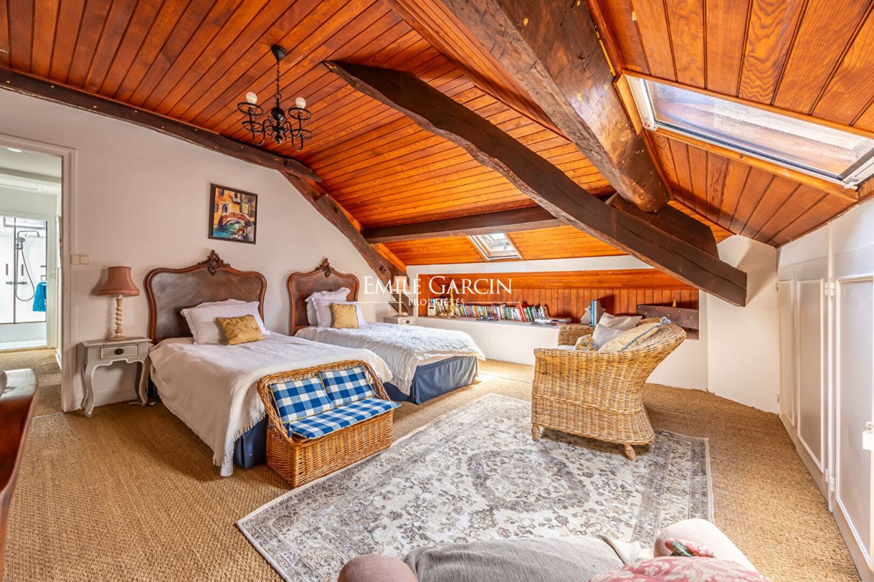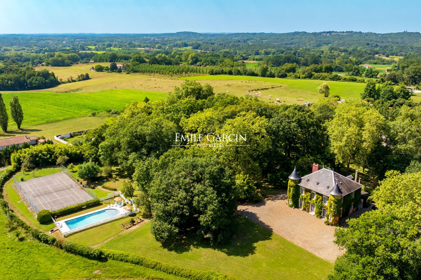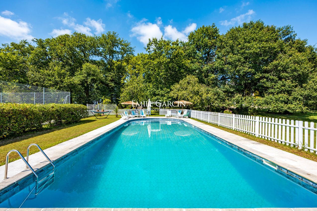 A rare opportunity. Property for sale located just one kilometre from the centre of a charming village overlooking the Adour valley, presenting a beautiful view of the Pyrenees from the Pic du Midi to the Trois Couronnes in Spain. This renovated château, which was built in the 1850s in the style of the 18th century, comprises 3 living rooms (one of 65 sq.m), a dining room, a kitchen, a laundry room, 8 bedrooms and 7 bathrooms. It is equipped with an annexed house built in the 1960s in the Landes style, composed of a living room, two bedrooms and a shower room. It sits on almost 2 hectares of land adorned with ancient oaks, shrubs, meadows, woodland, an orchard and a vegetable garden. The outdoor spaces are also equipped with a 13 x 5m swimming pool with Spanish tiles and a tennis court in perfect condition. The property is peaceful, not overlooked and south facing.