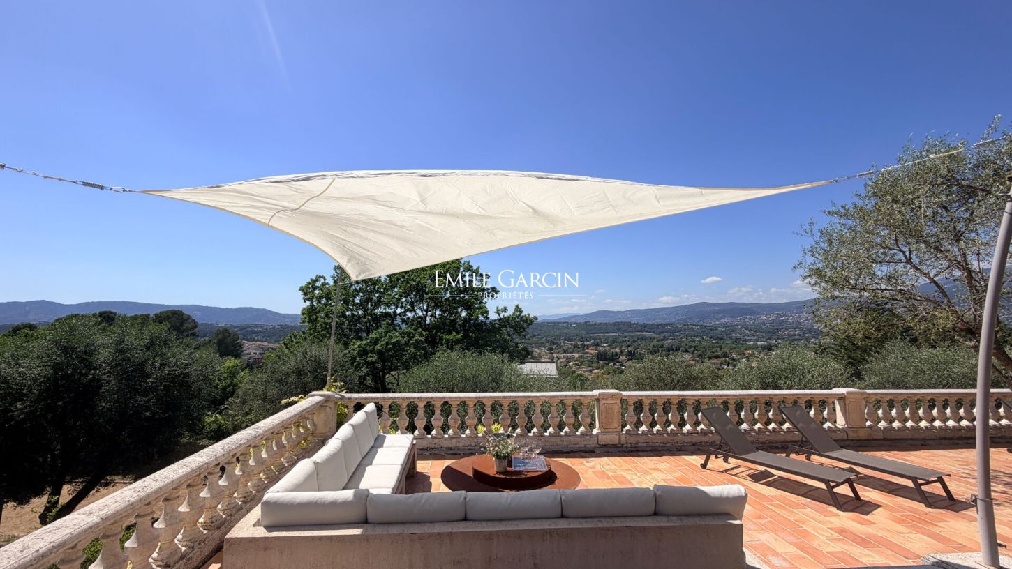 Located in the heart of the sought-after and secure residential area of ??Castellaras, just 5 minutes from Mougins and Valbonne, this exceptional property stands out for its perfect condition, south- and west-facing aspect, elevated position, absolute tranquility and complete privacy. Within easy reach of the local shops, schools and main roads, it offers a desirable quality of life in a popular area. The interior is centred around a bright open-plan living/dining room of approximately 90 sq.m and a fully equipped, high-end contemporary kitchen. On the ground floor, you will also find a master suite of approximately 30 sq.m with ensuite bathroom and direct access to the outdoor spaces, as well as a utility room. Upstairs, there are three additional bedrooms, two with magnificent private terraces, providing ample space for family and guests. Sitting on approximately 2,400 sq.m of landscaped grounds adorned with olive trees and Mediterranean plants, this villa presents a high-end finish and generous, light-filled living spaces. The perfectly designed outdoor areas include spacious terraces, a fire pit and several relaxation areas, perfect for socializing and unwinding. This is a turnkey property in a prime location, offering space, light, privacy and top-of-the-range amenities.
