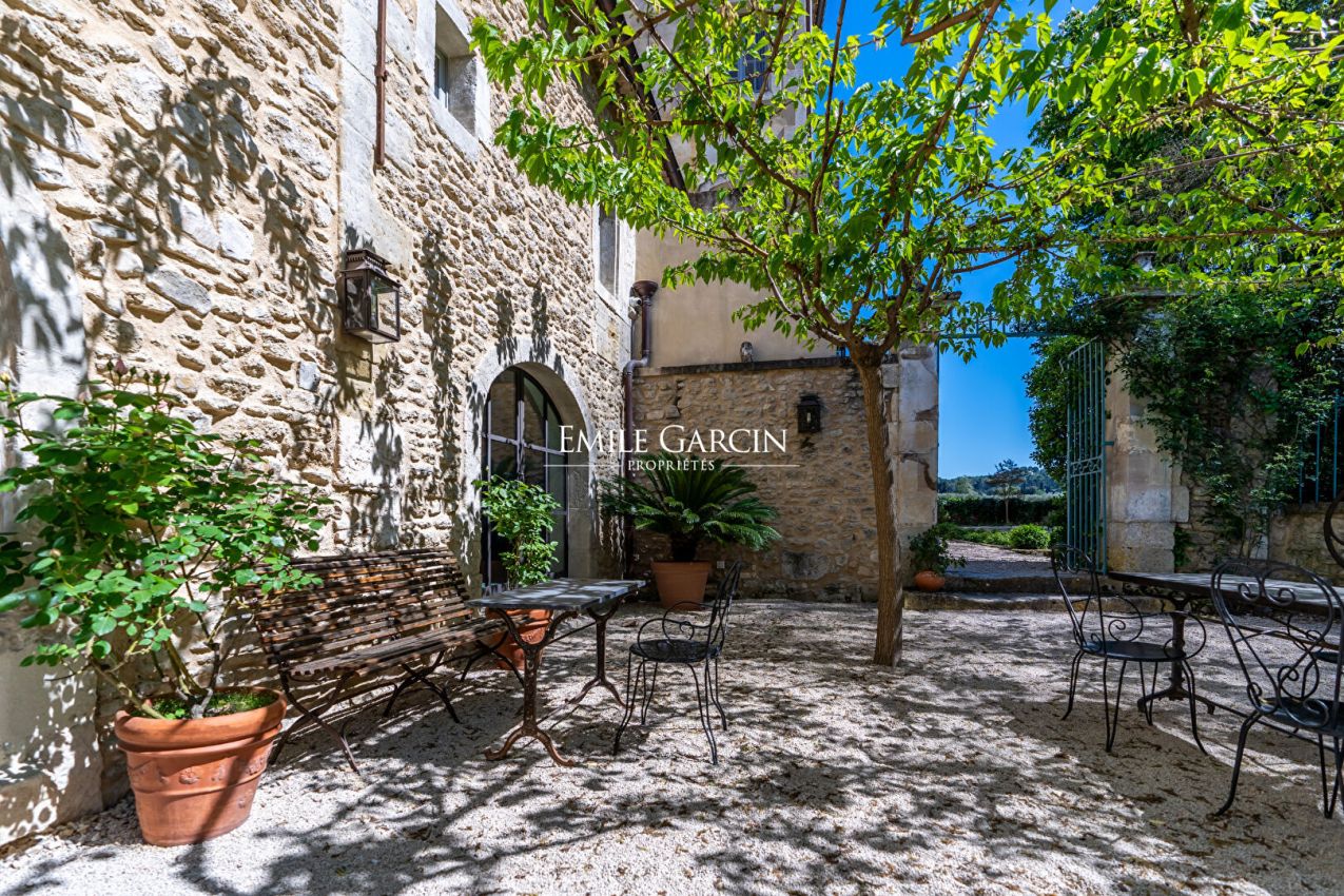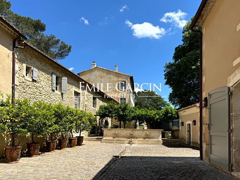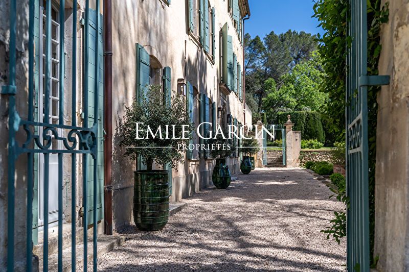 Magnificent estate comprising 10 hectares of private land in the heart of the Alpilles. Includes an authentic restored country house and its leafy grounds, featuring a magnificent avenue of ancient plane trees, a rose garden, an olive grove, an orchard and meadows. Secluded and peaceful. Carefully restored. Several outbuildings: guest house, gym and hammam. Caretaker's apartment, chapel housing studio accommodation, garages, swimming pool and poolhouse, tennis court. An utterly unique property in the Alpilles.